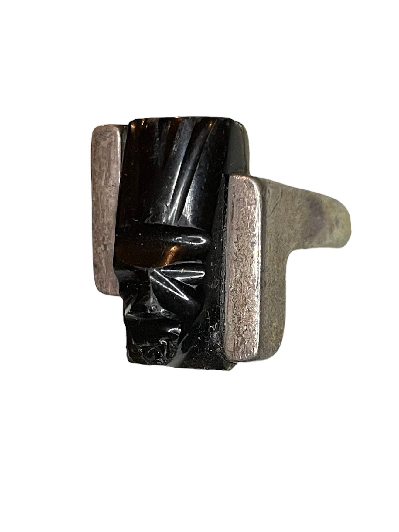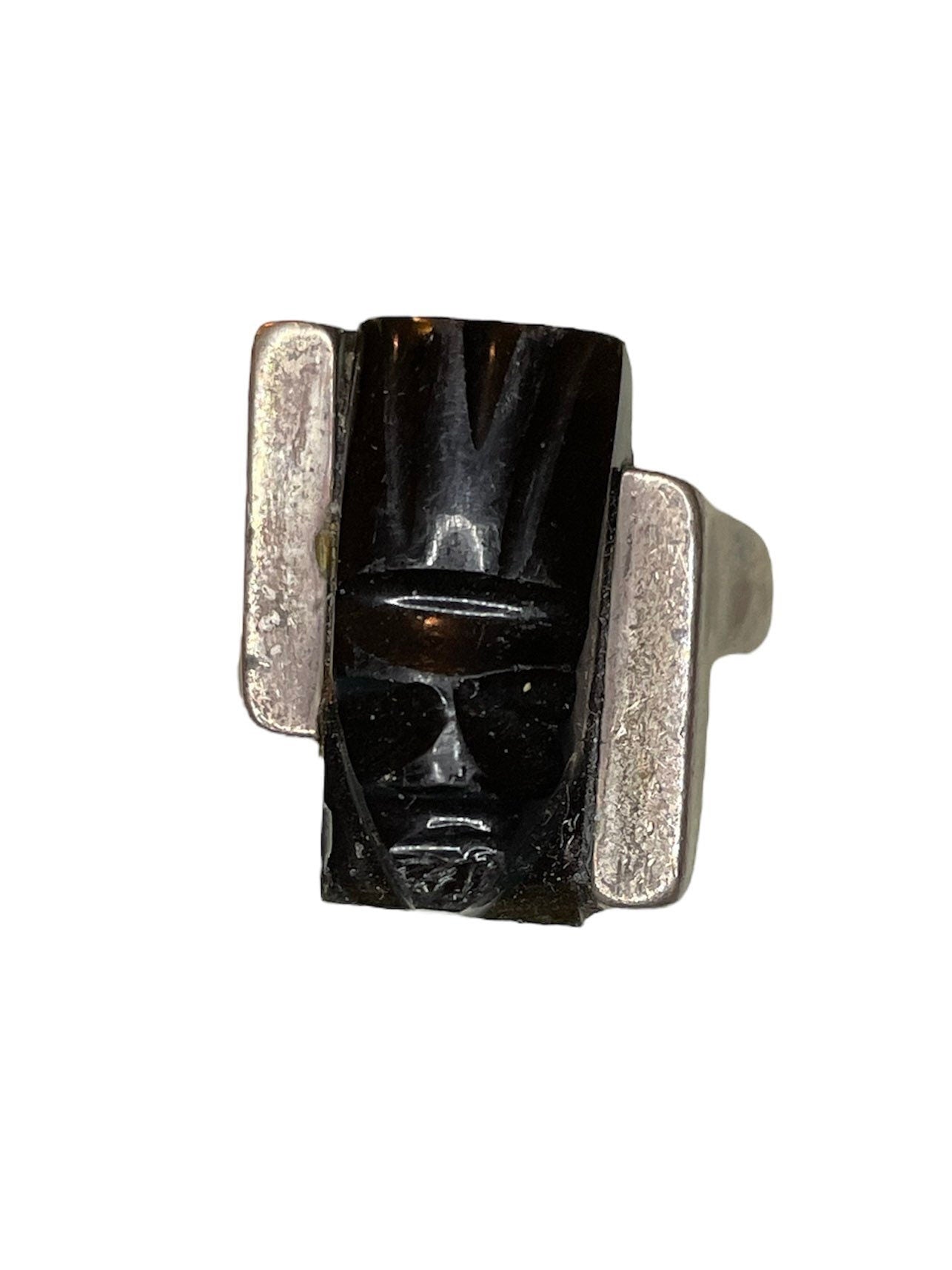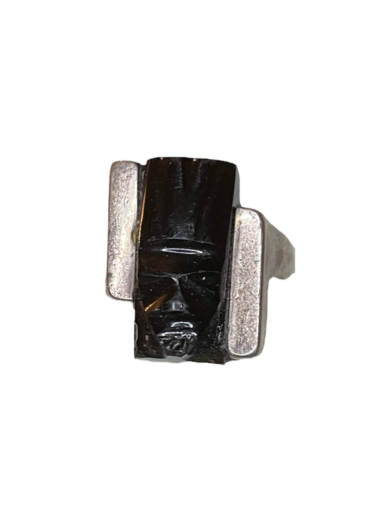 Vintage Black Onyx Mexican Mask Sterling Silver RING