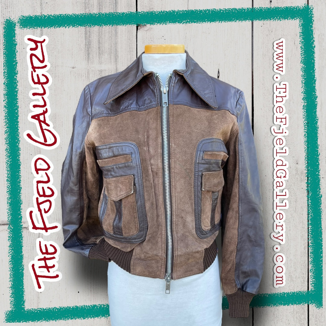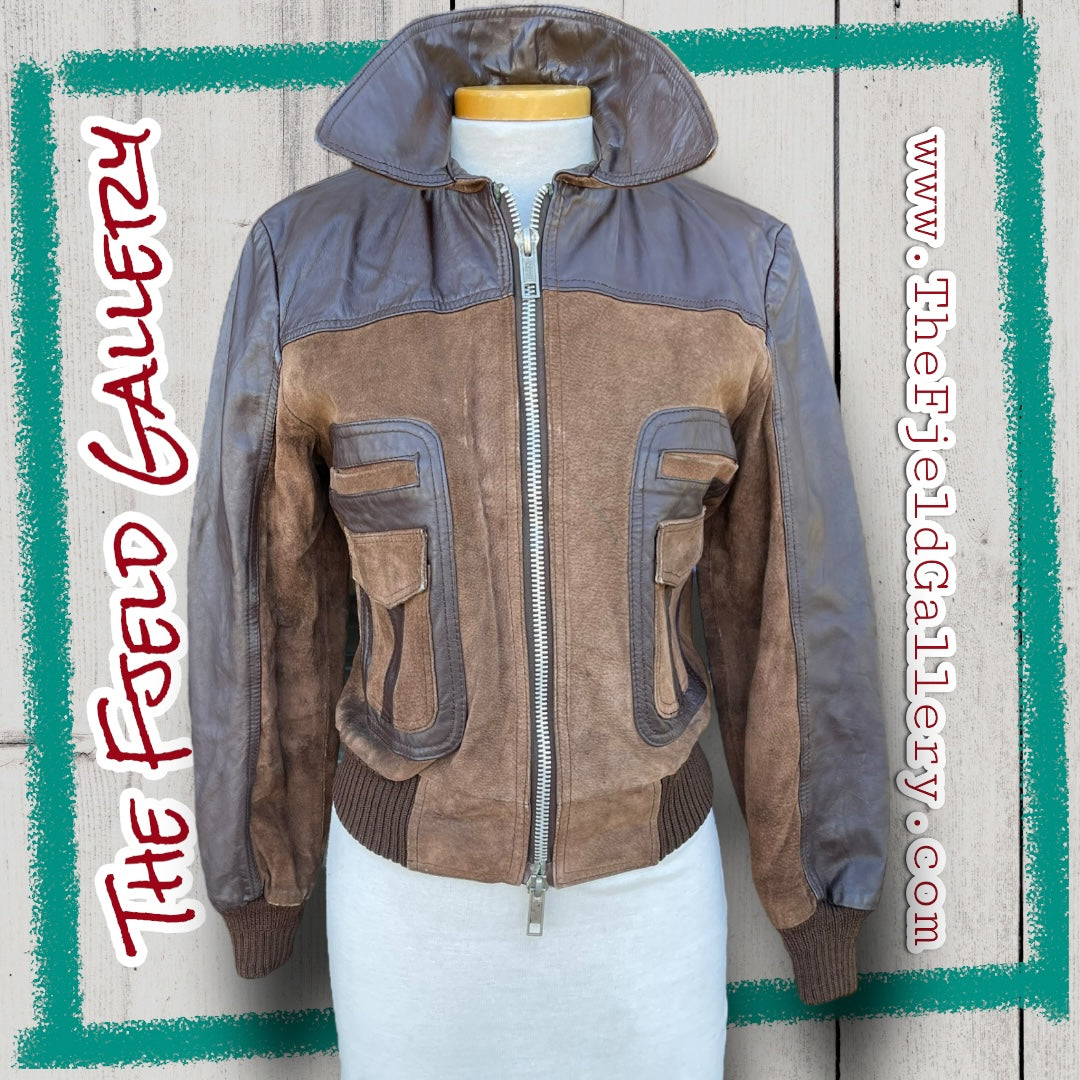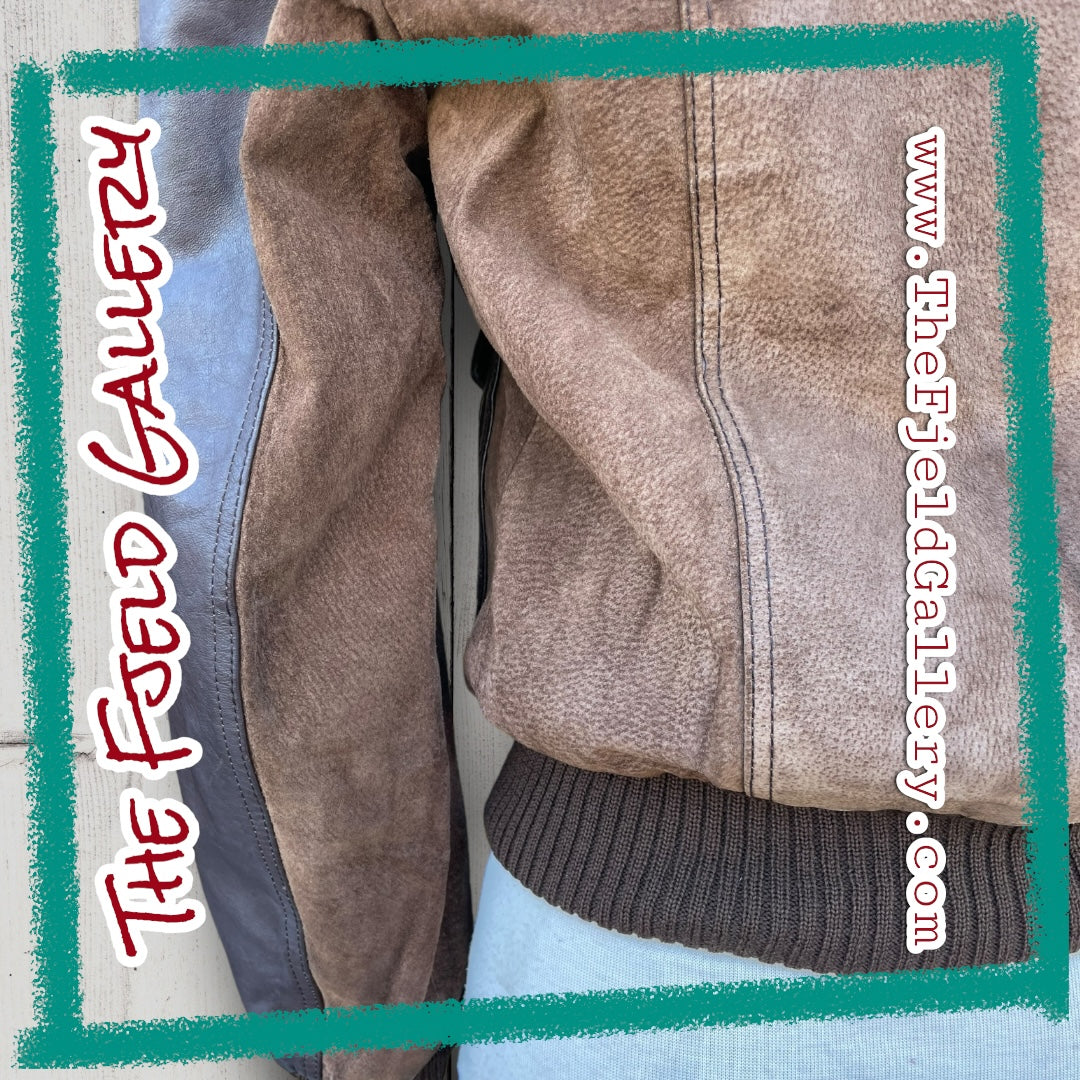 Vintage Brown Leather, Suede & Knit Bomber Jacket with Double Zipper
