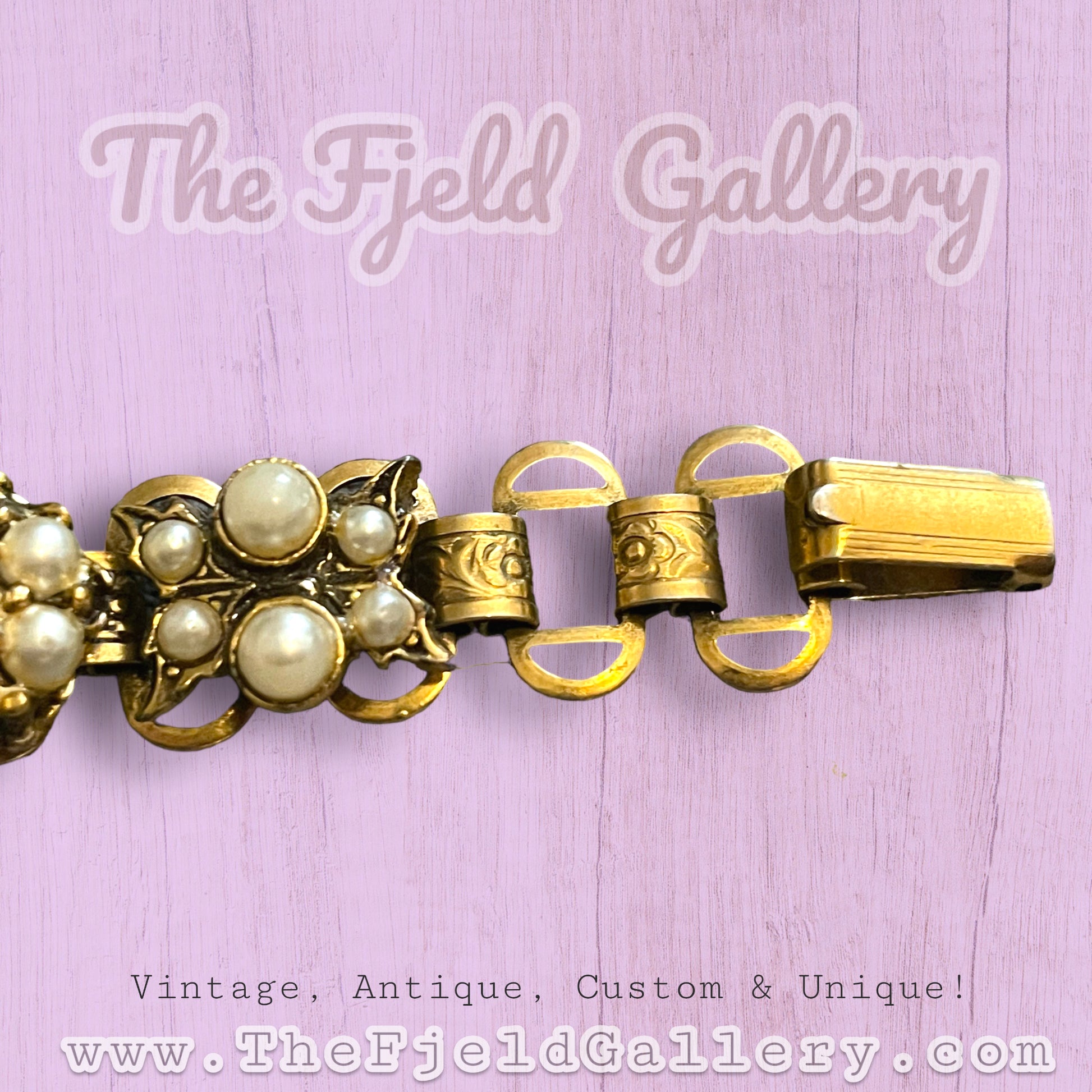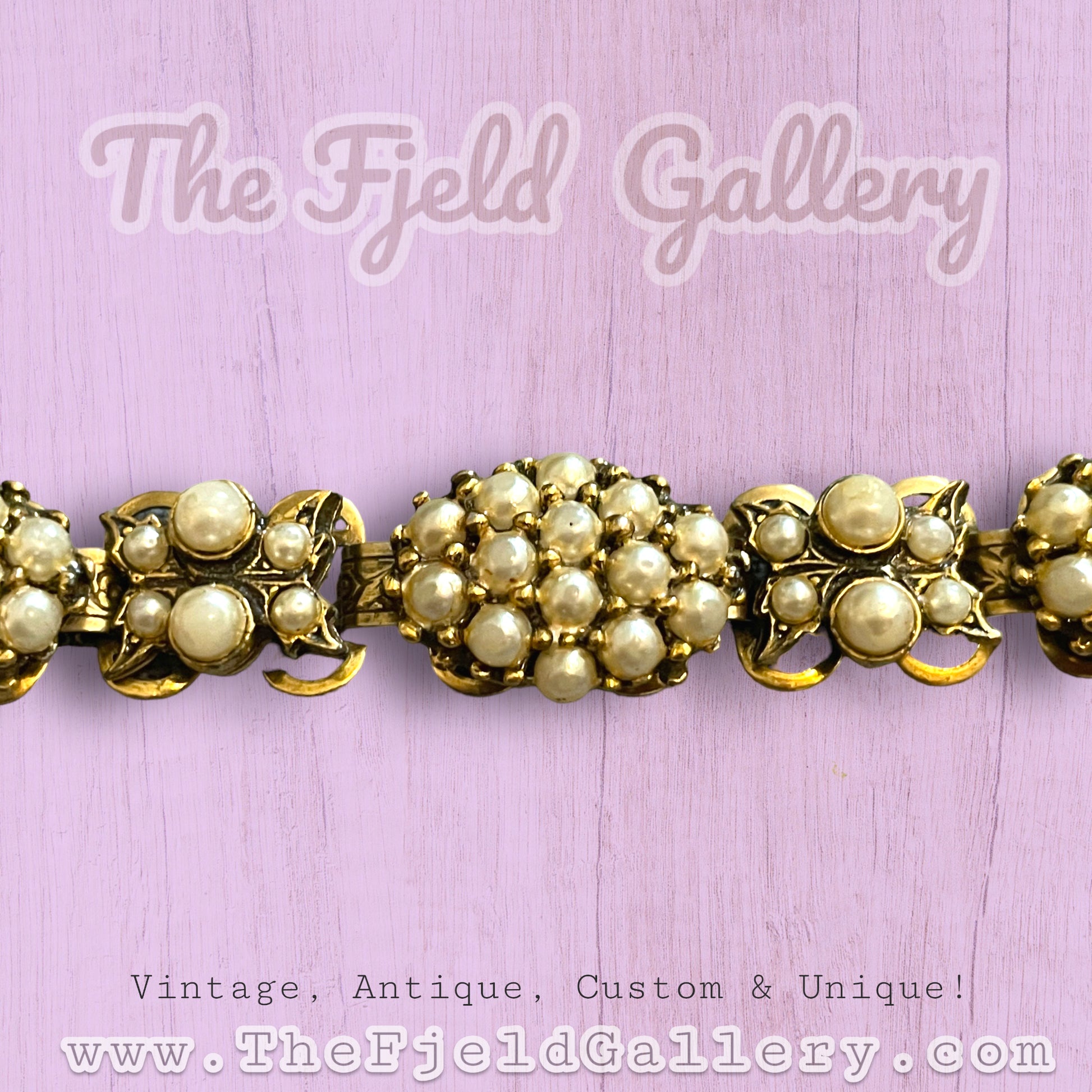 Vintage Cluster Pearl Victorian Bookchain Gold Bracelet