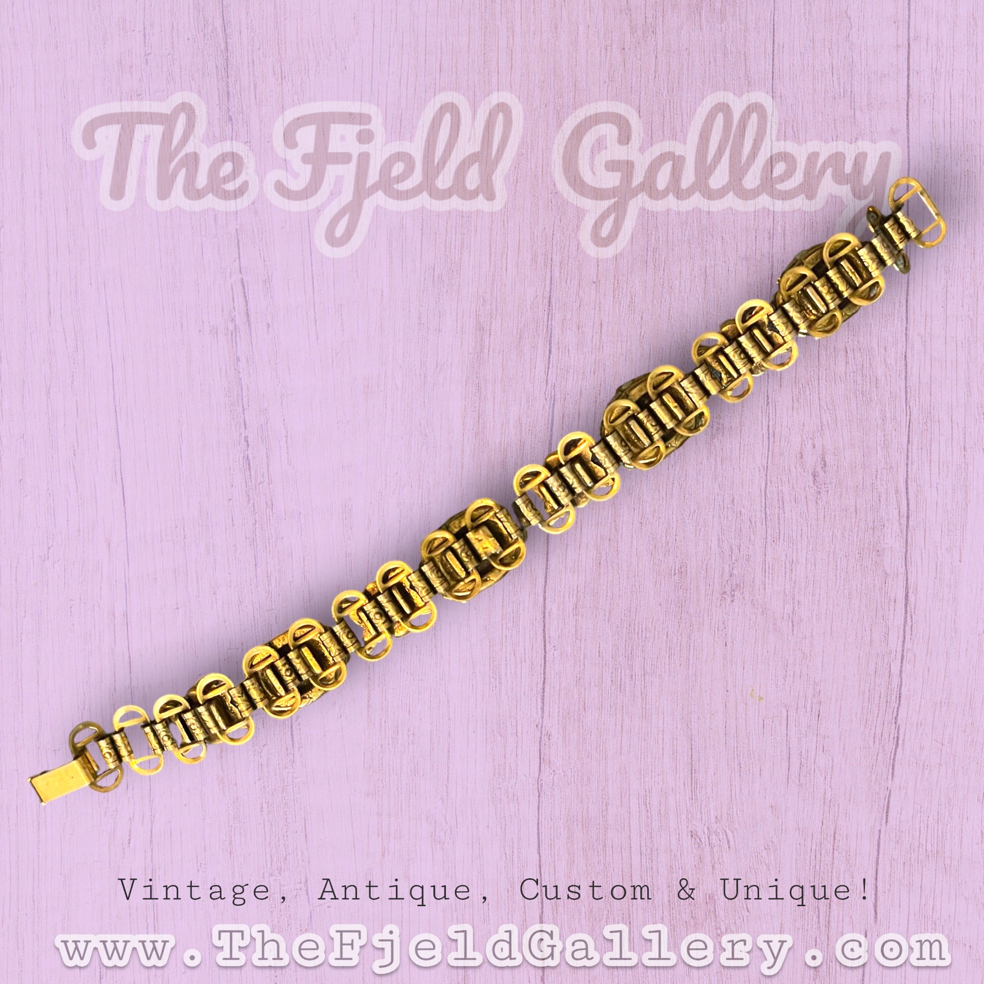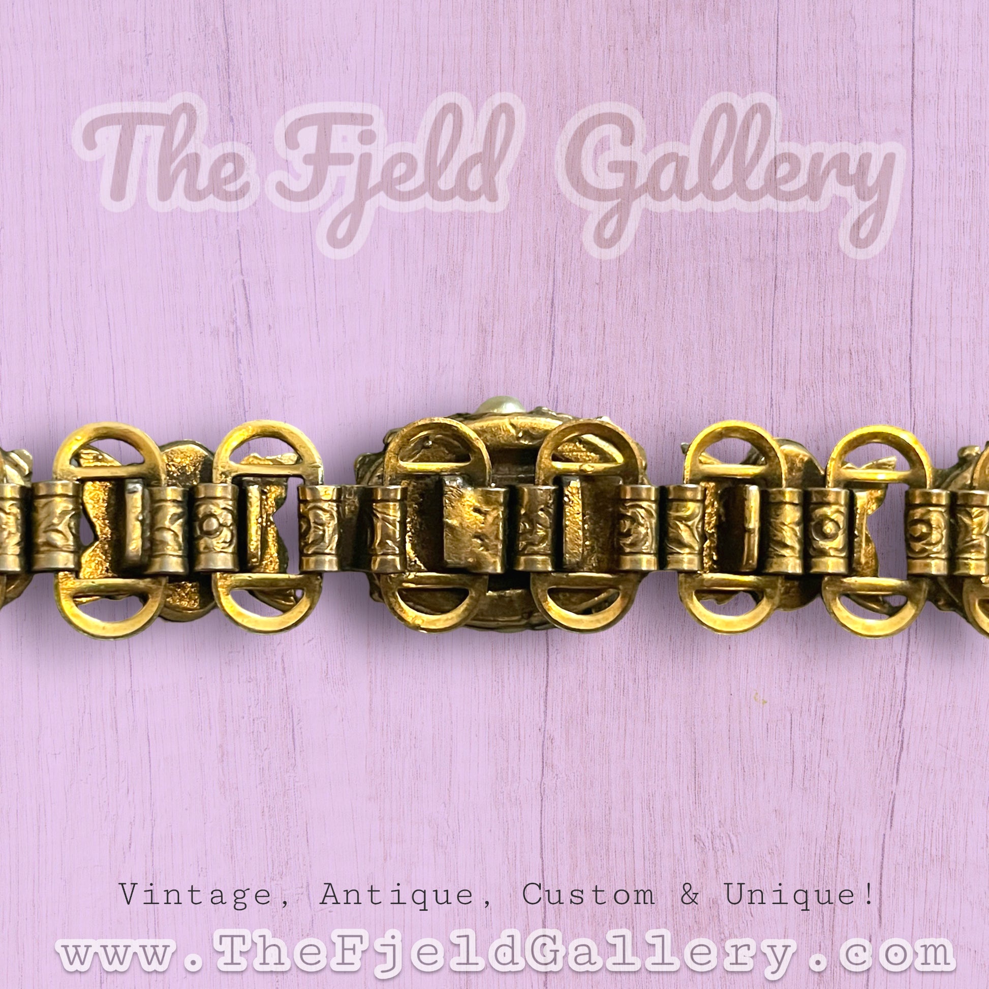 Beautiful vintage victorian bookchain cluster pearl embossed link bracelet. c.1930