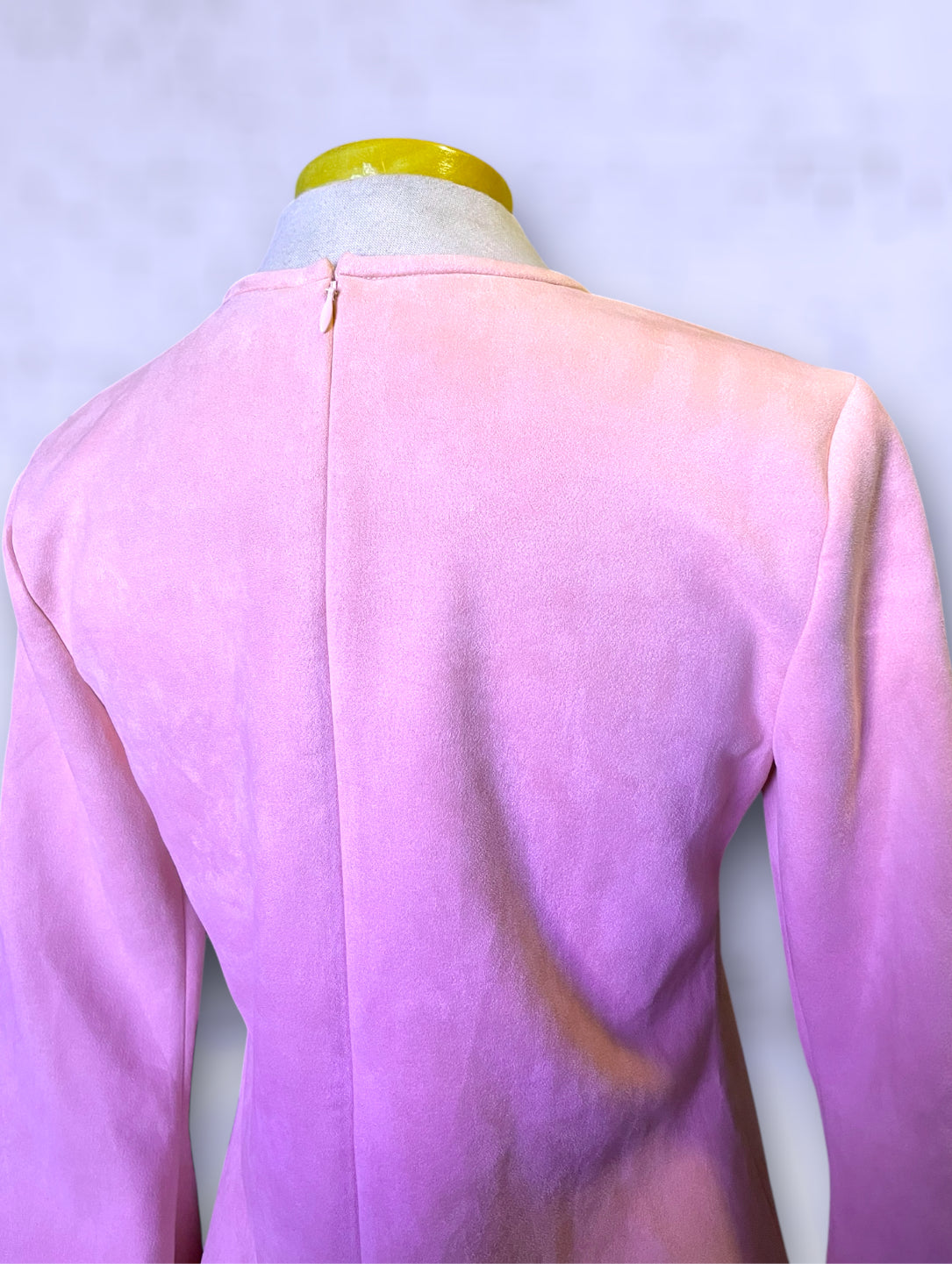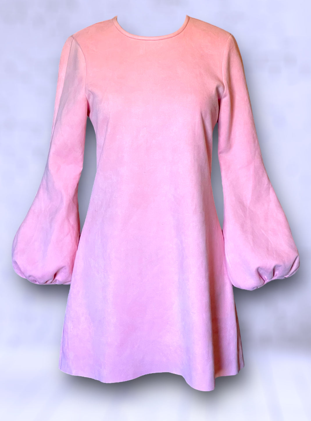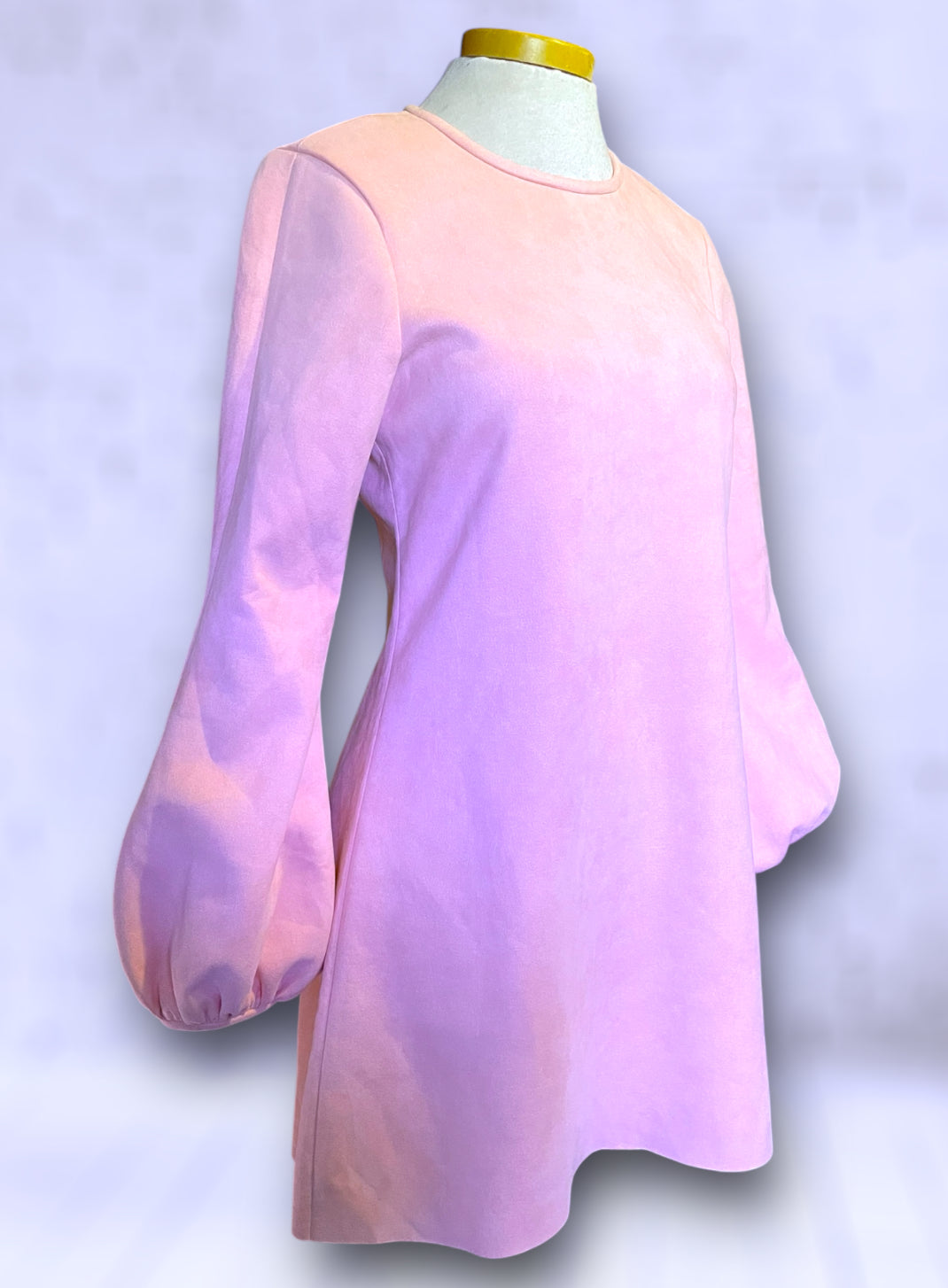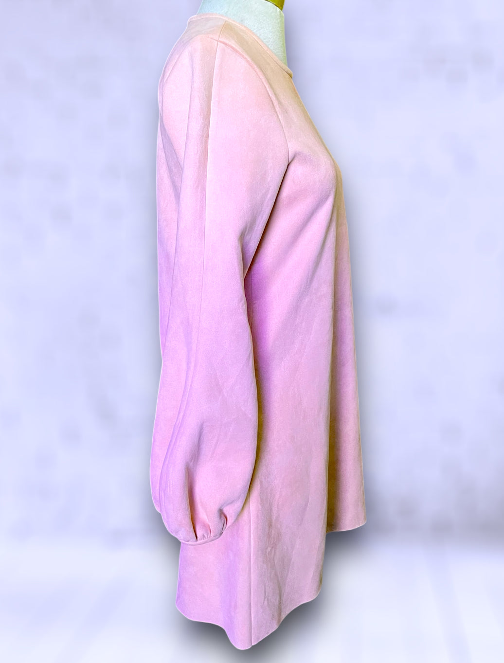 Vintage Cynthia Rowley Retro Pink Faux Suede Bubble Long Sleeve 60’s Mod Dress