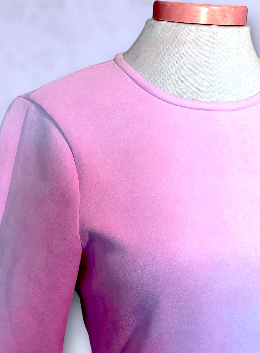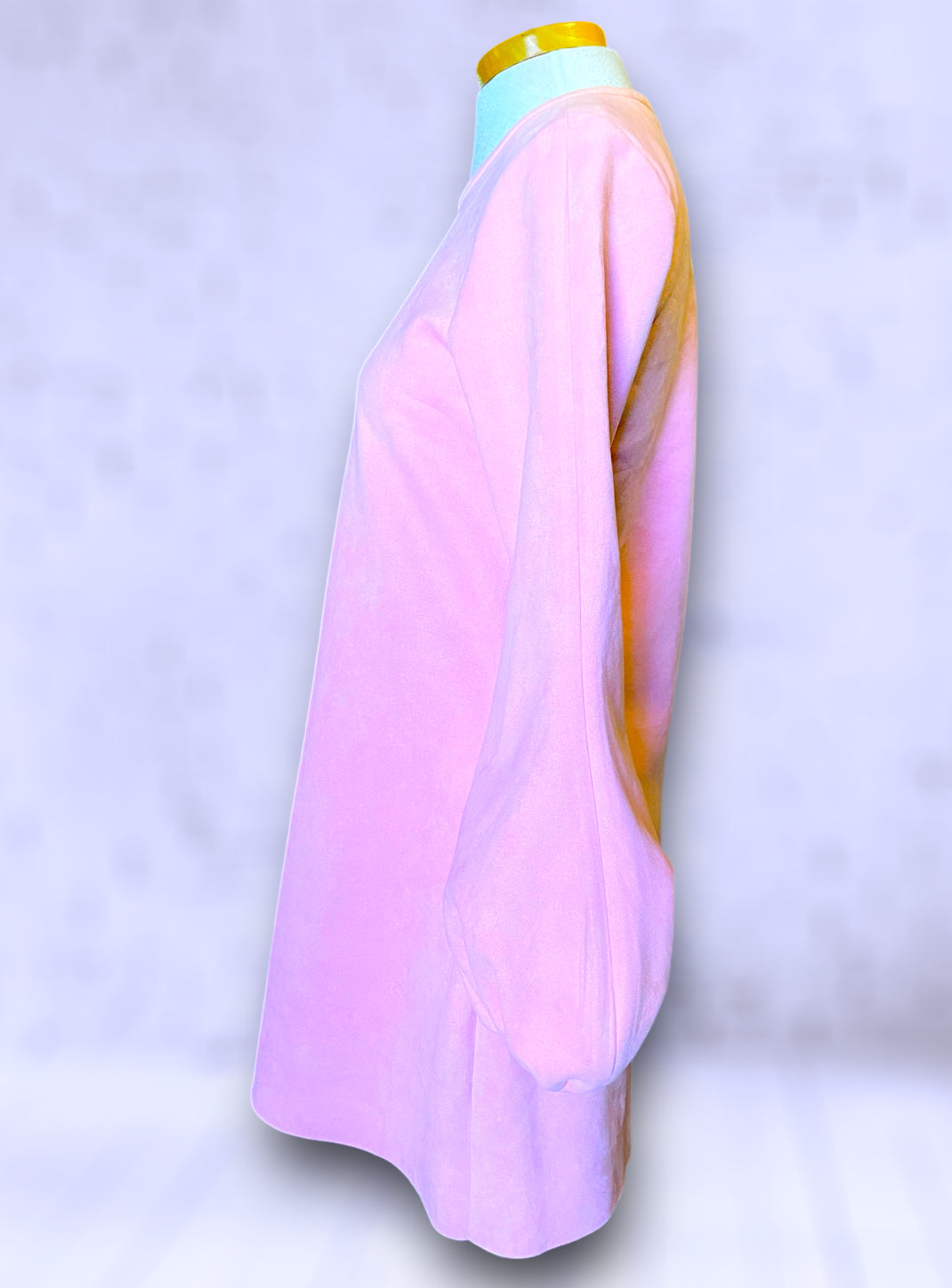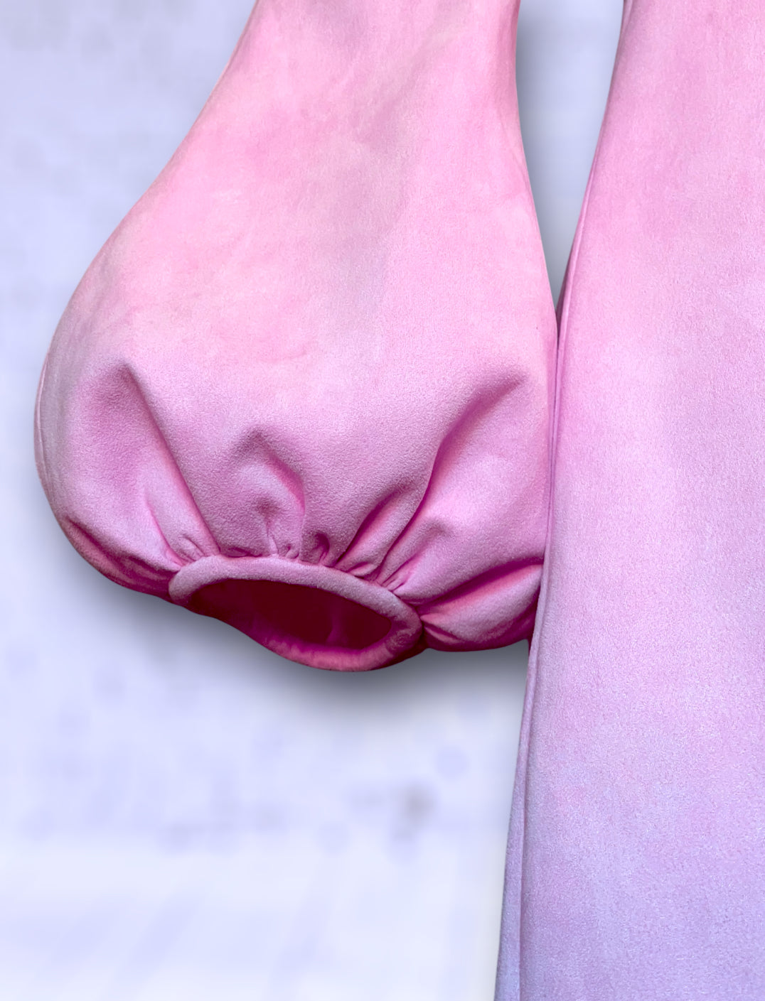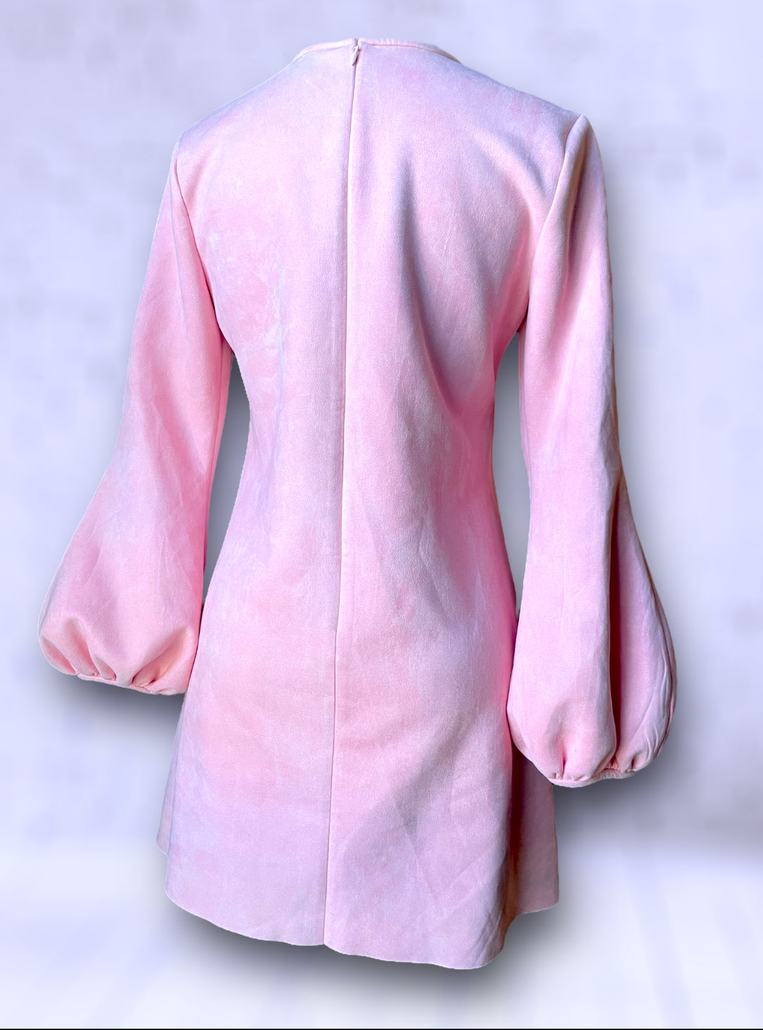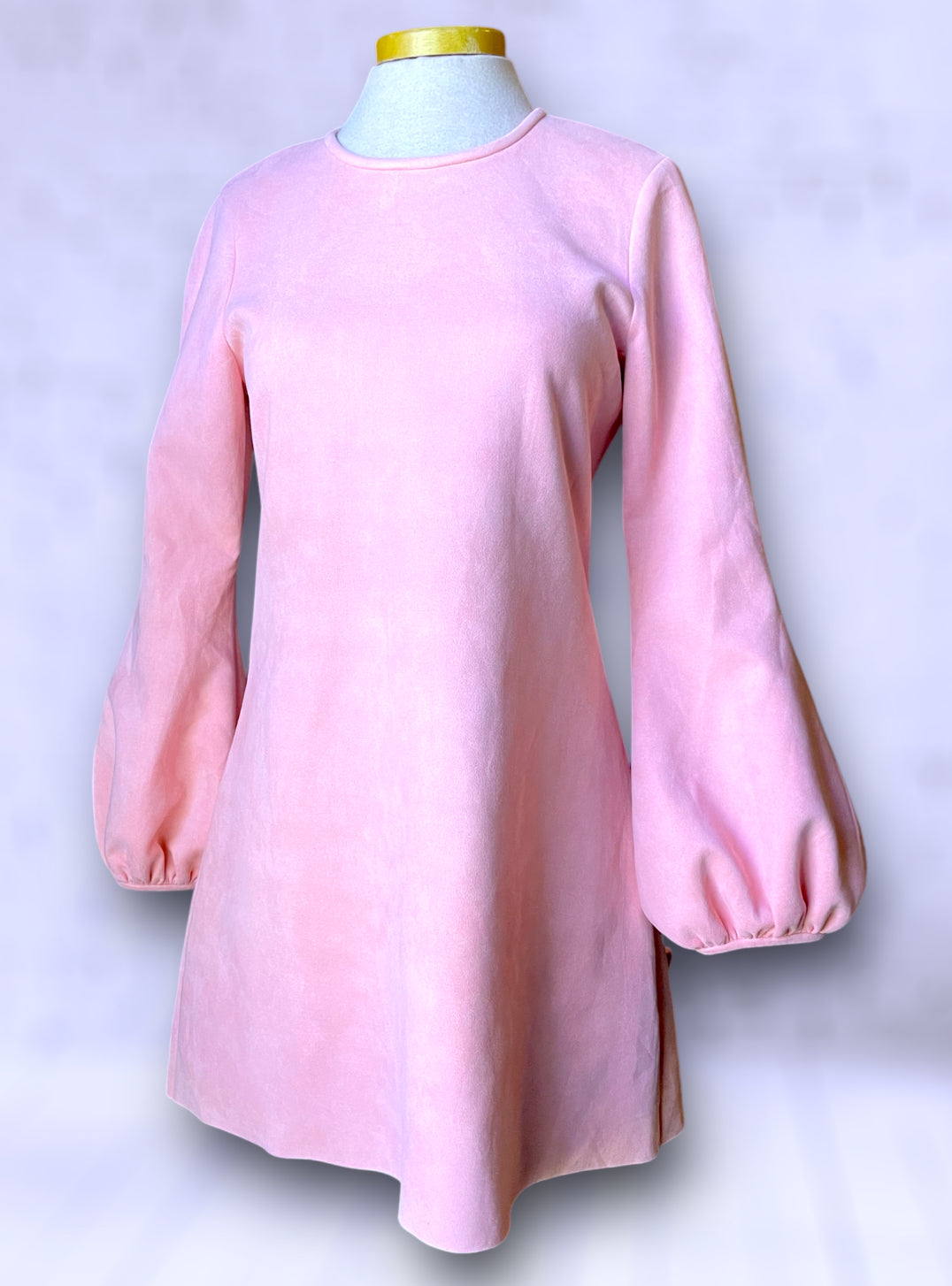 Vintage Cynthia Rowley Retro Pink Faux Suede Bubble Long Sleeve 60’s Mod Dress