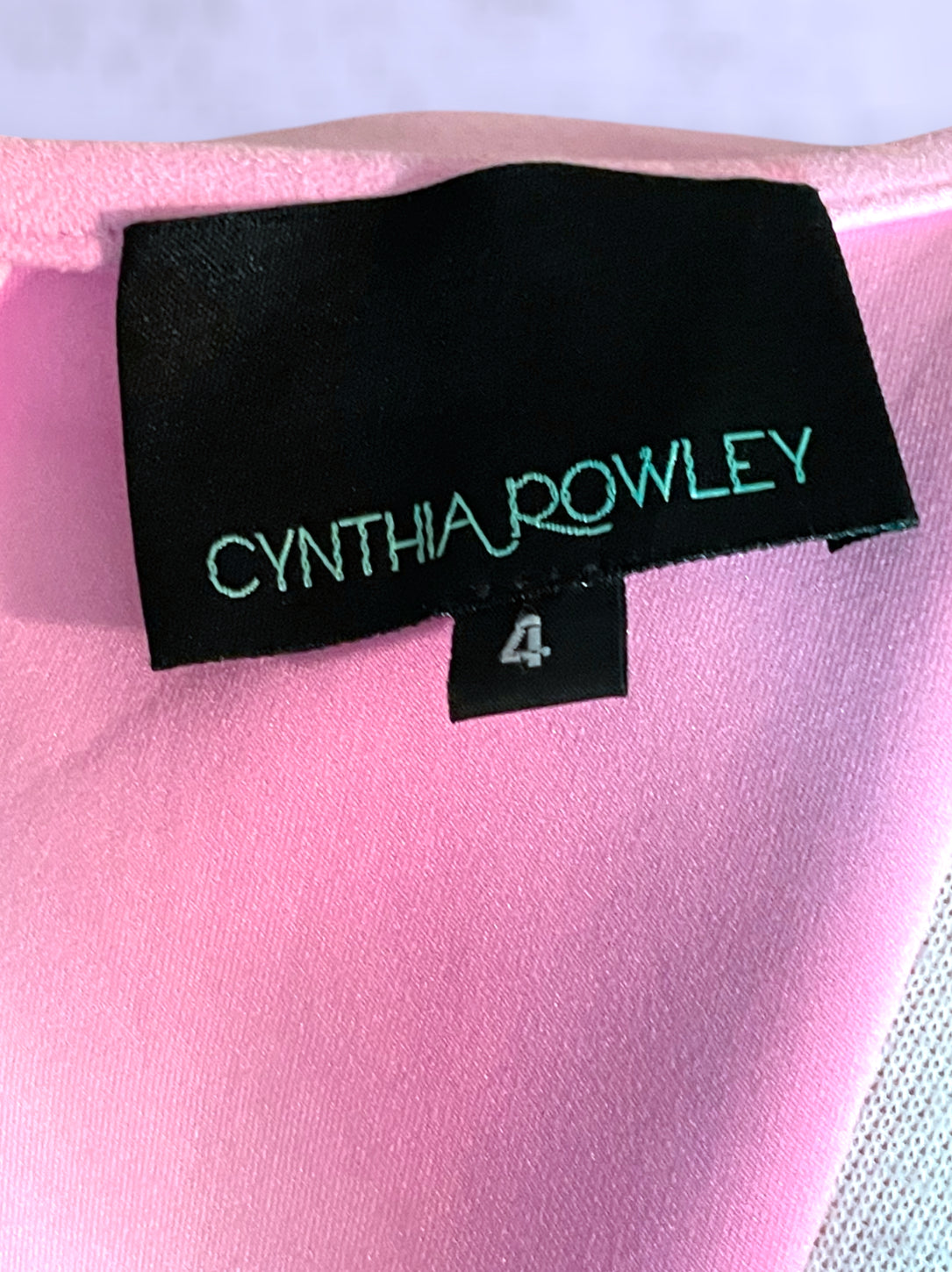 This is a super cute and retro mod 69’s design Cynthia Rowley designer dress made in the late 1990’s. A beautiful faux pink suede short A-line dress with long flared bubble sleeves. Hidden back zipper with hook and eye closure at top. Has an “unfinished” straight cut hemline (by design not due to hem coming out). Label says size 4, but it seems larger to me. See measurements below. Fabric feels and looks like suede but is actually a polyester spandex mix. Perfect condition.