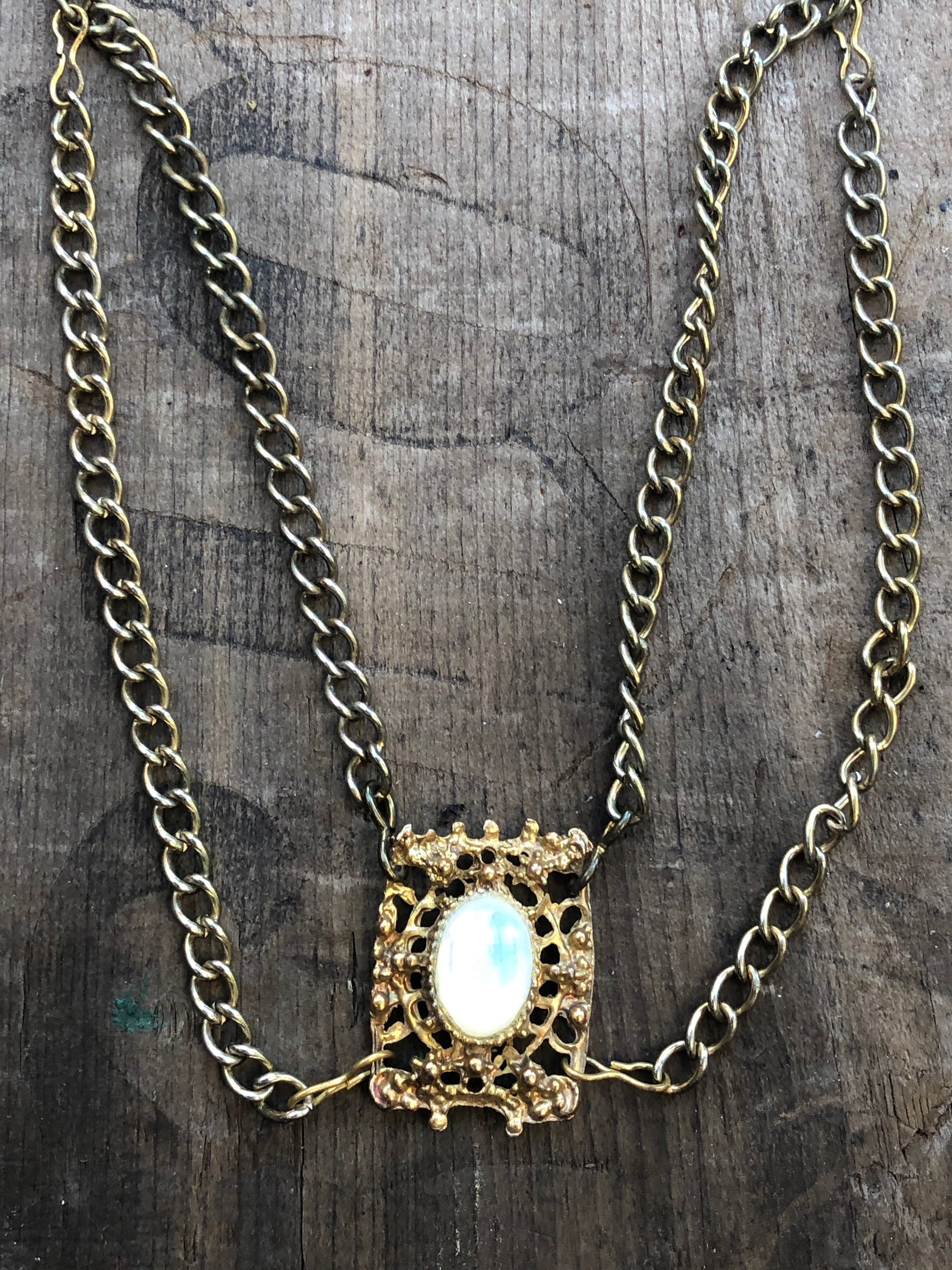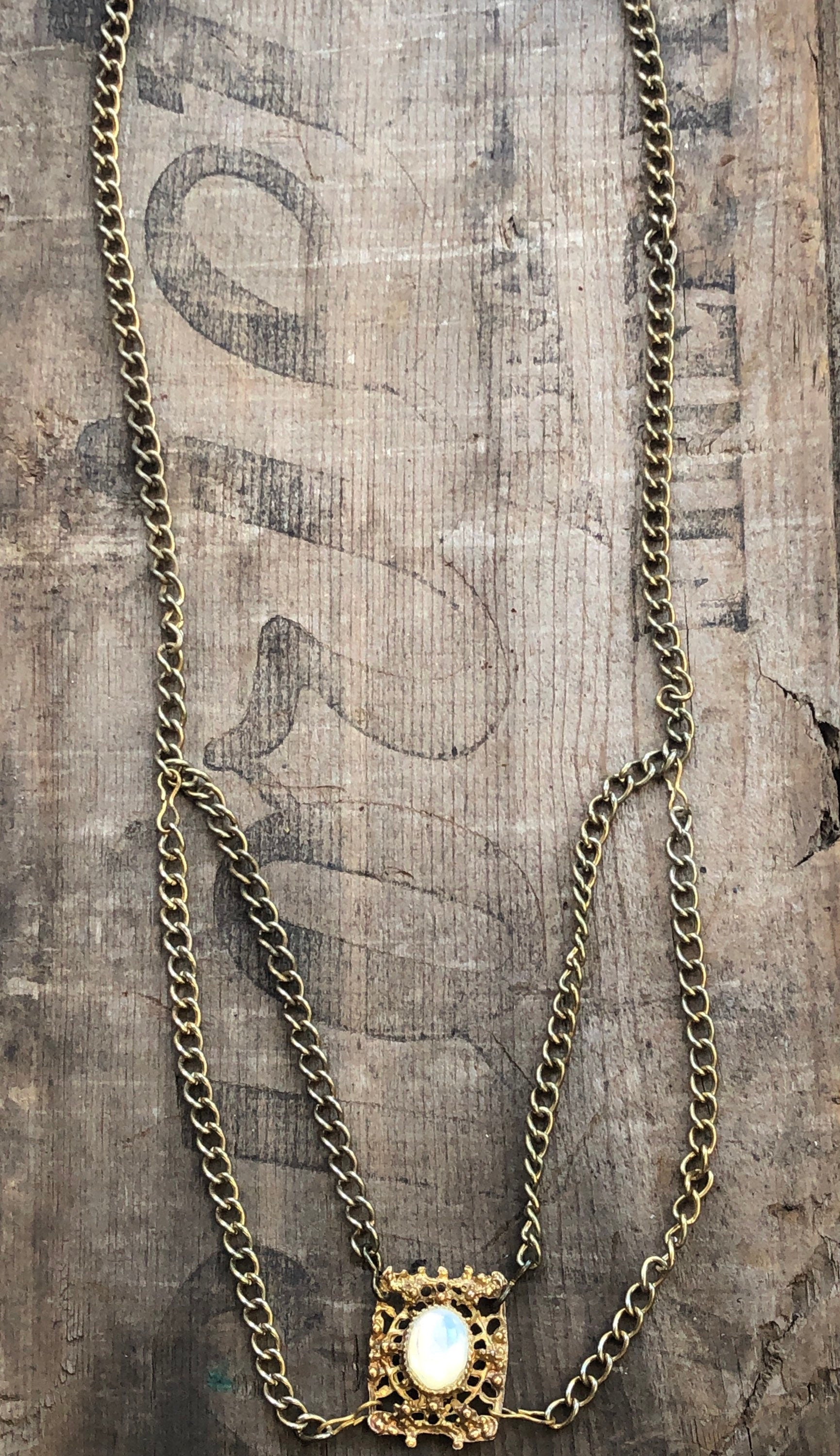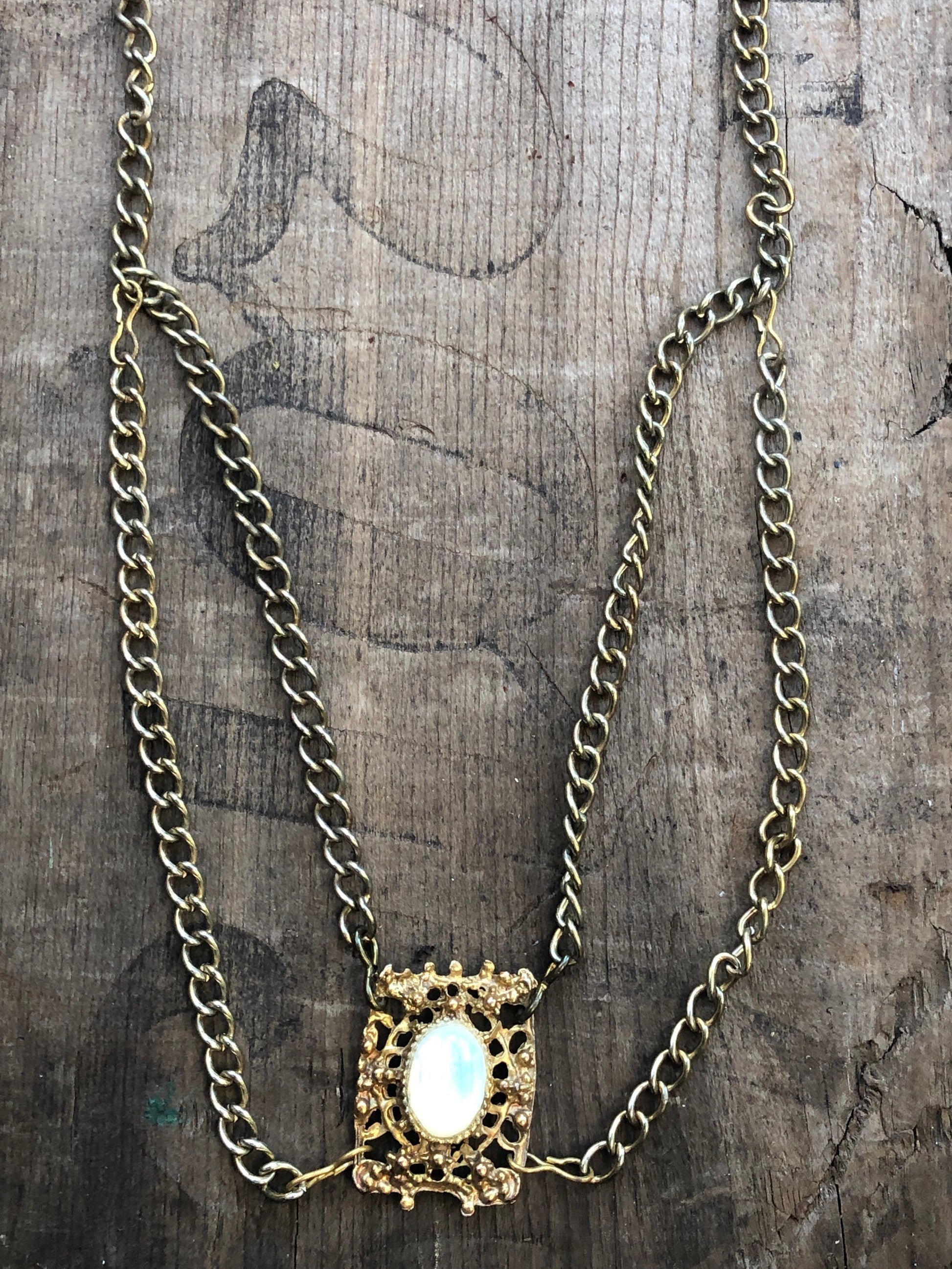 Vintage Gold Multi Chain & Glass Moonstone Bib Necklace