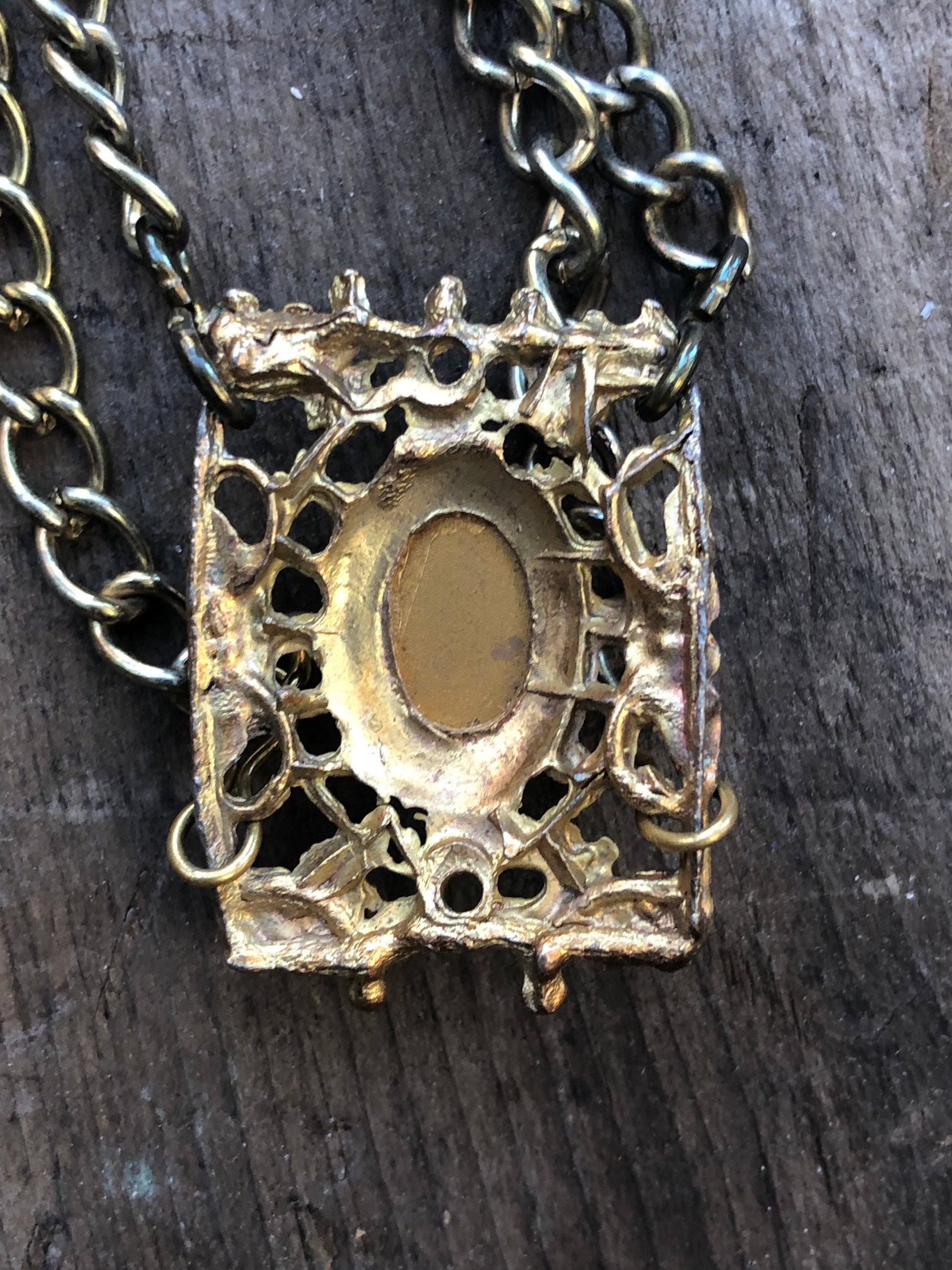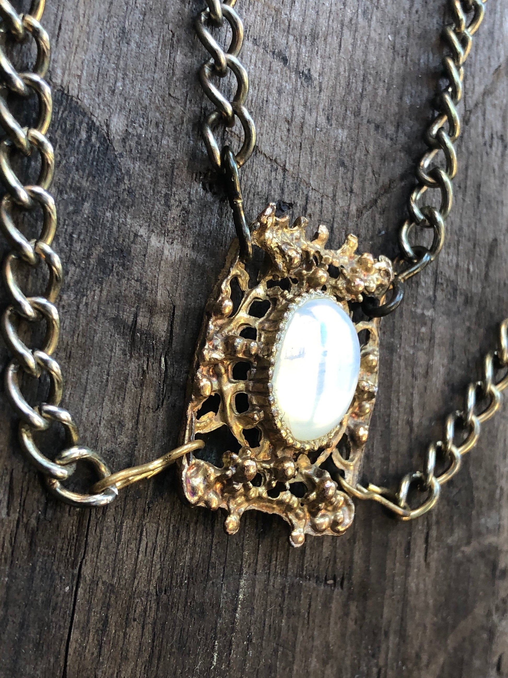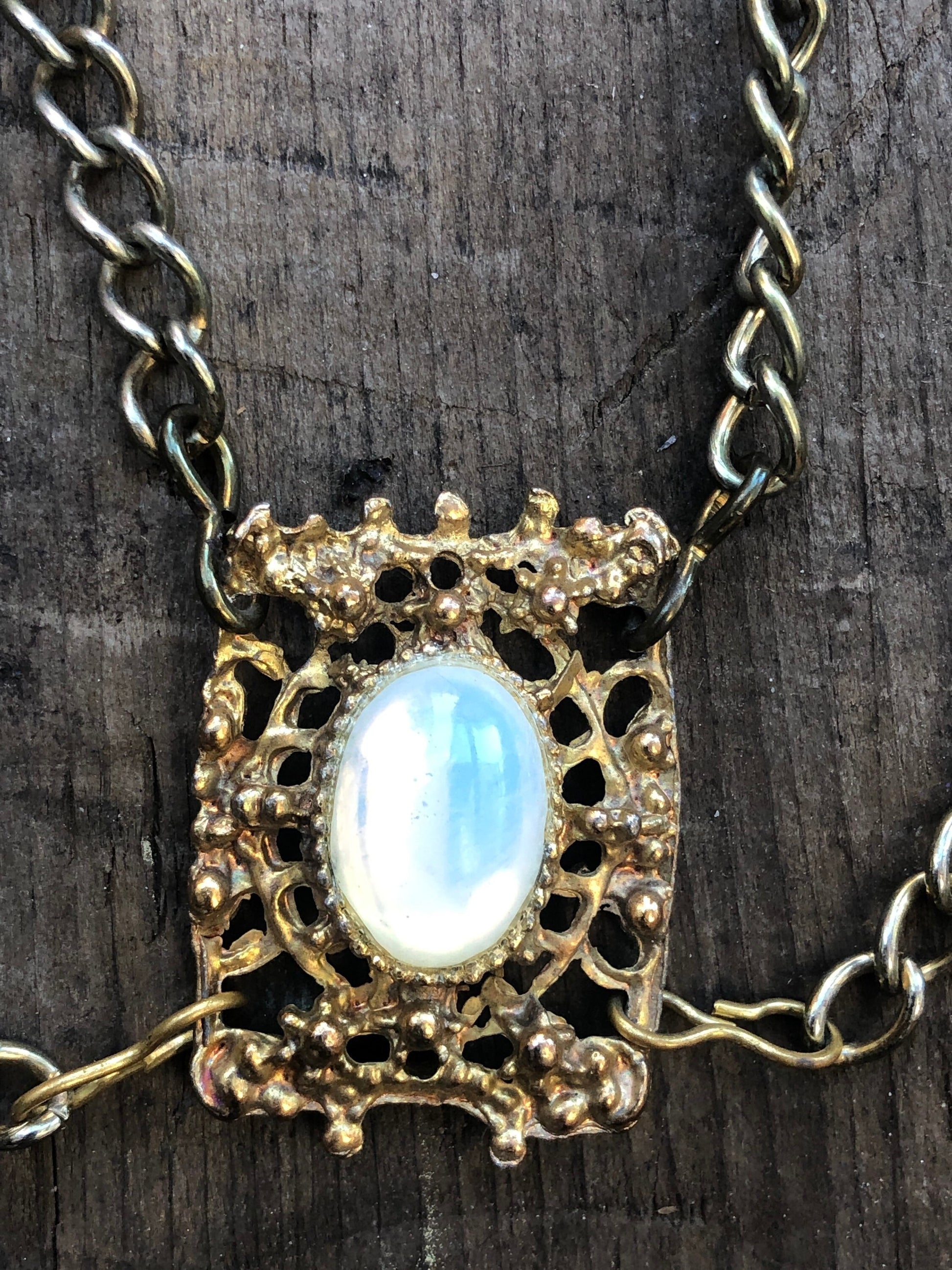 Vintage Gold Multi Chain & Glass Moonstone Bib Necklace