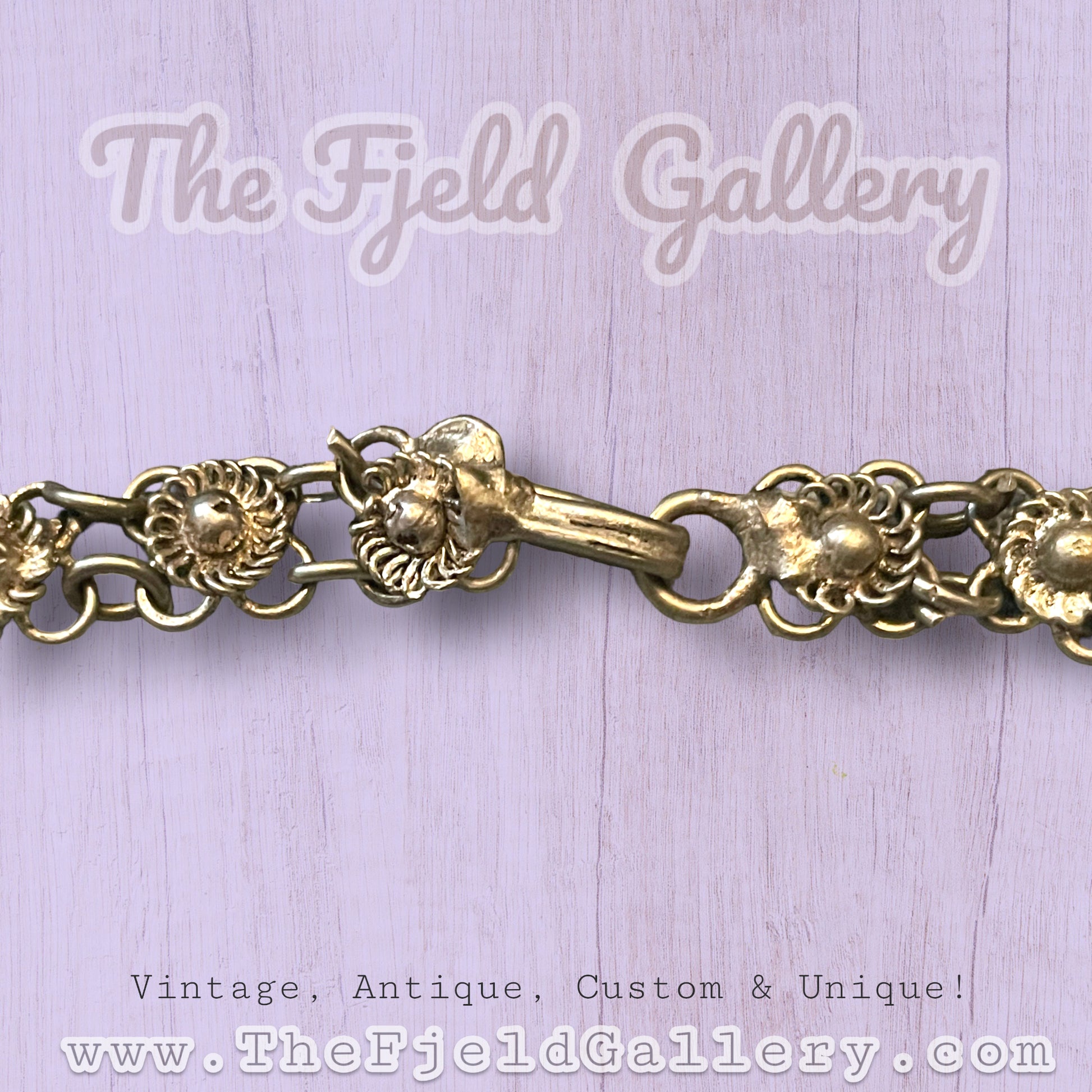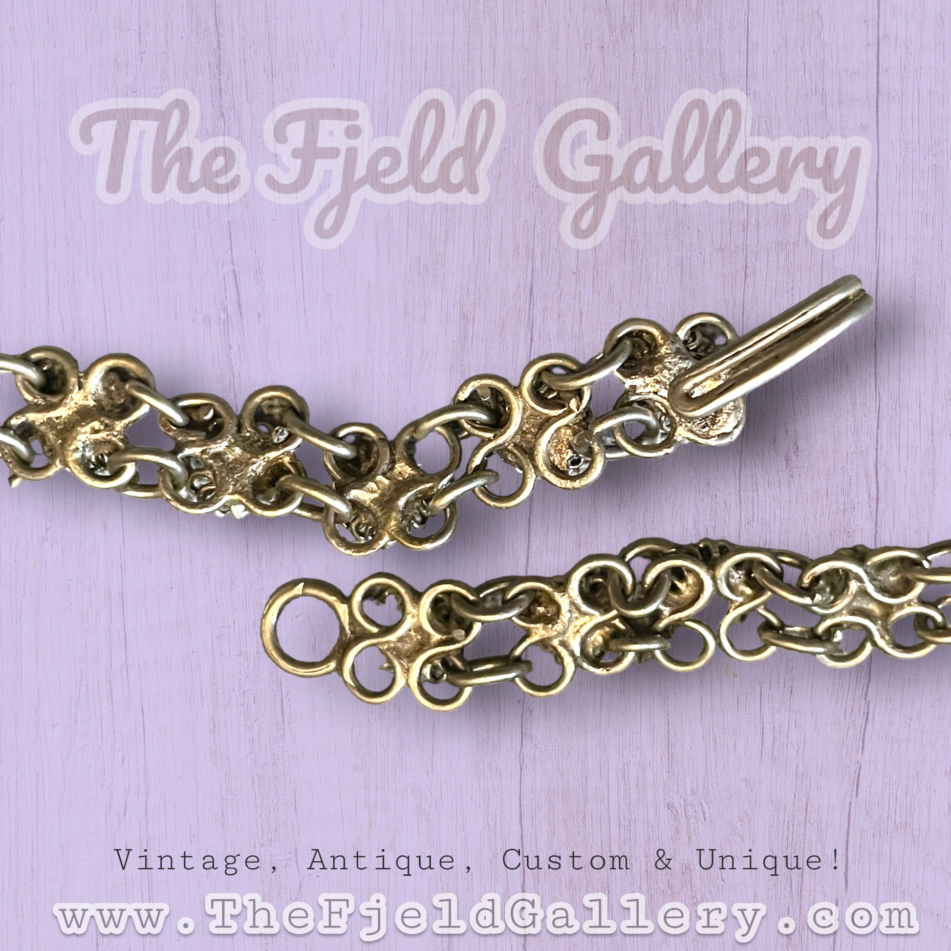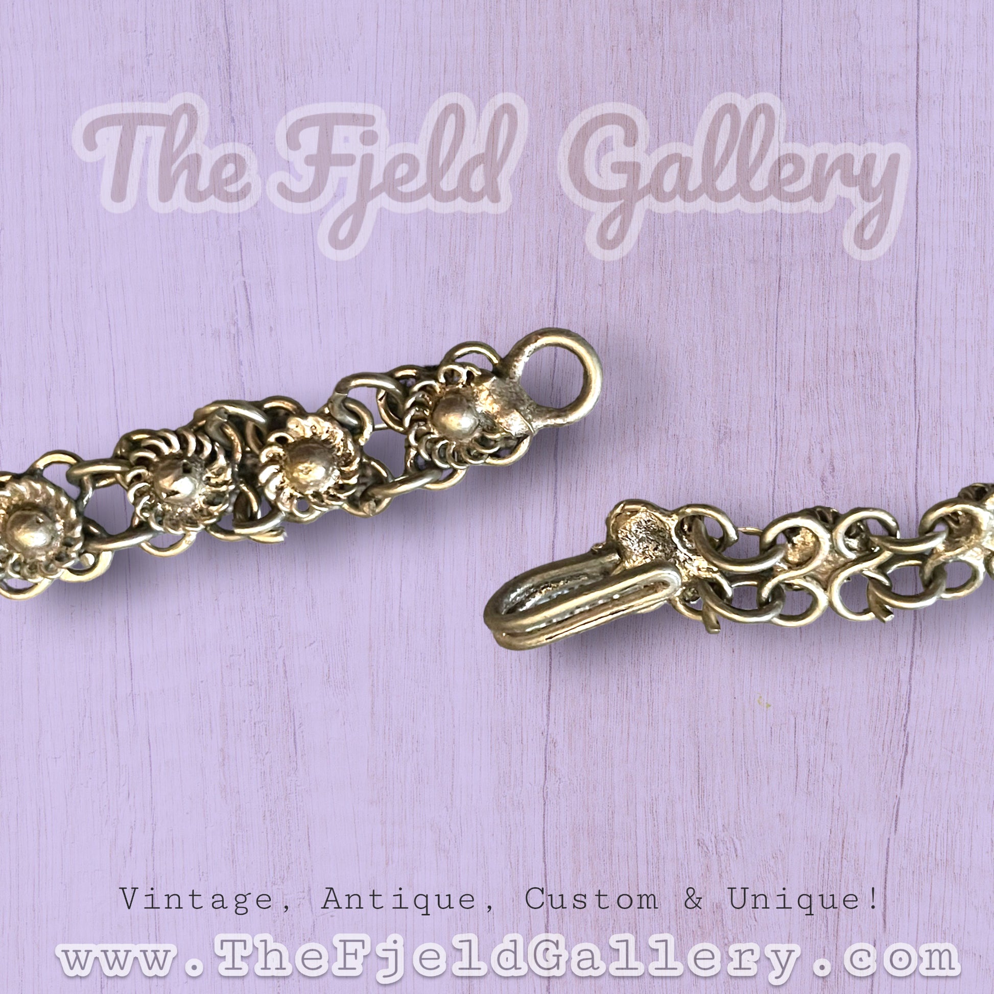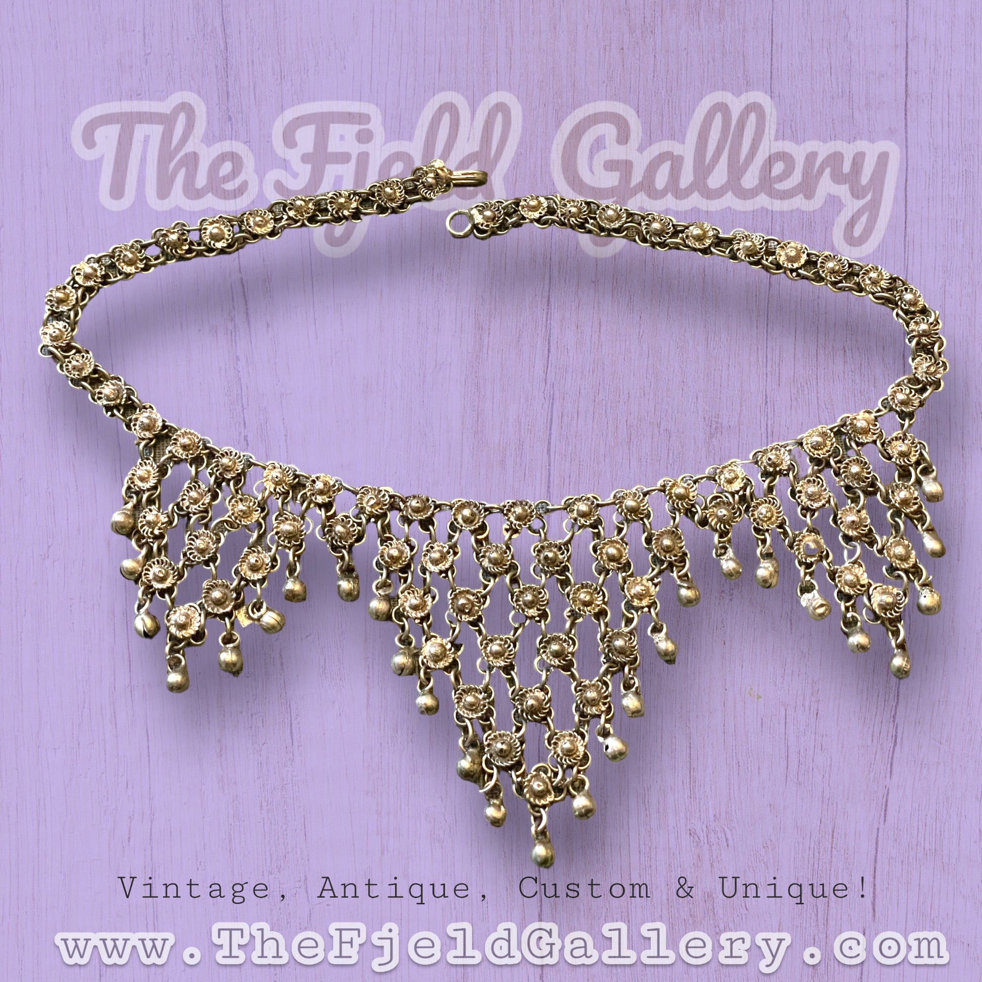 Beautiful unique vintage Indian bellydance style necklace. Silver flower design links connected into triangular shapes. Makes a beautiful jingling sound as it moves.