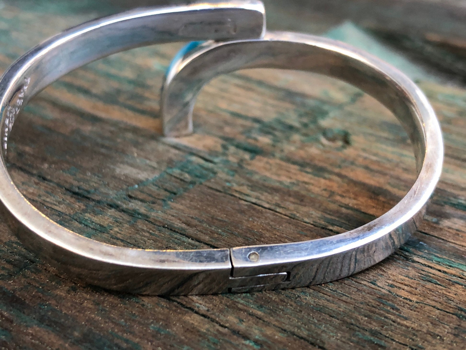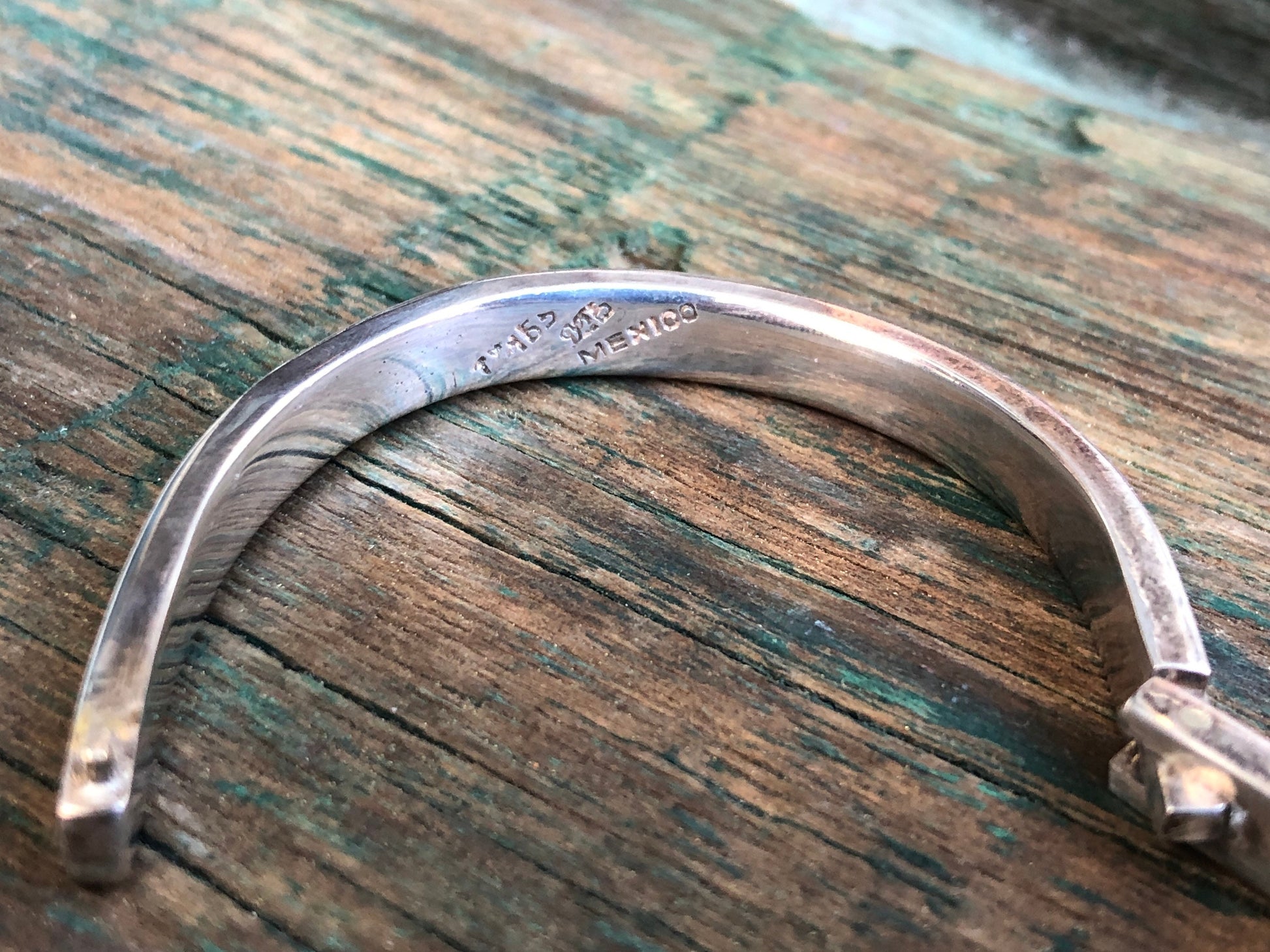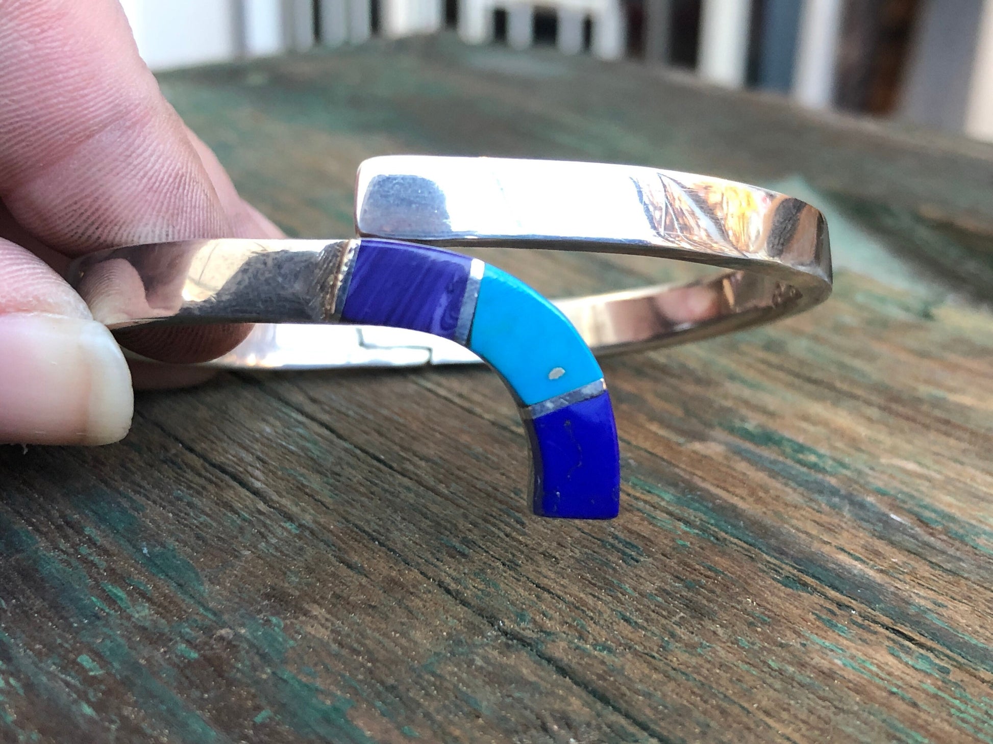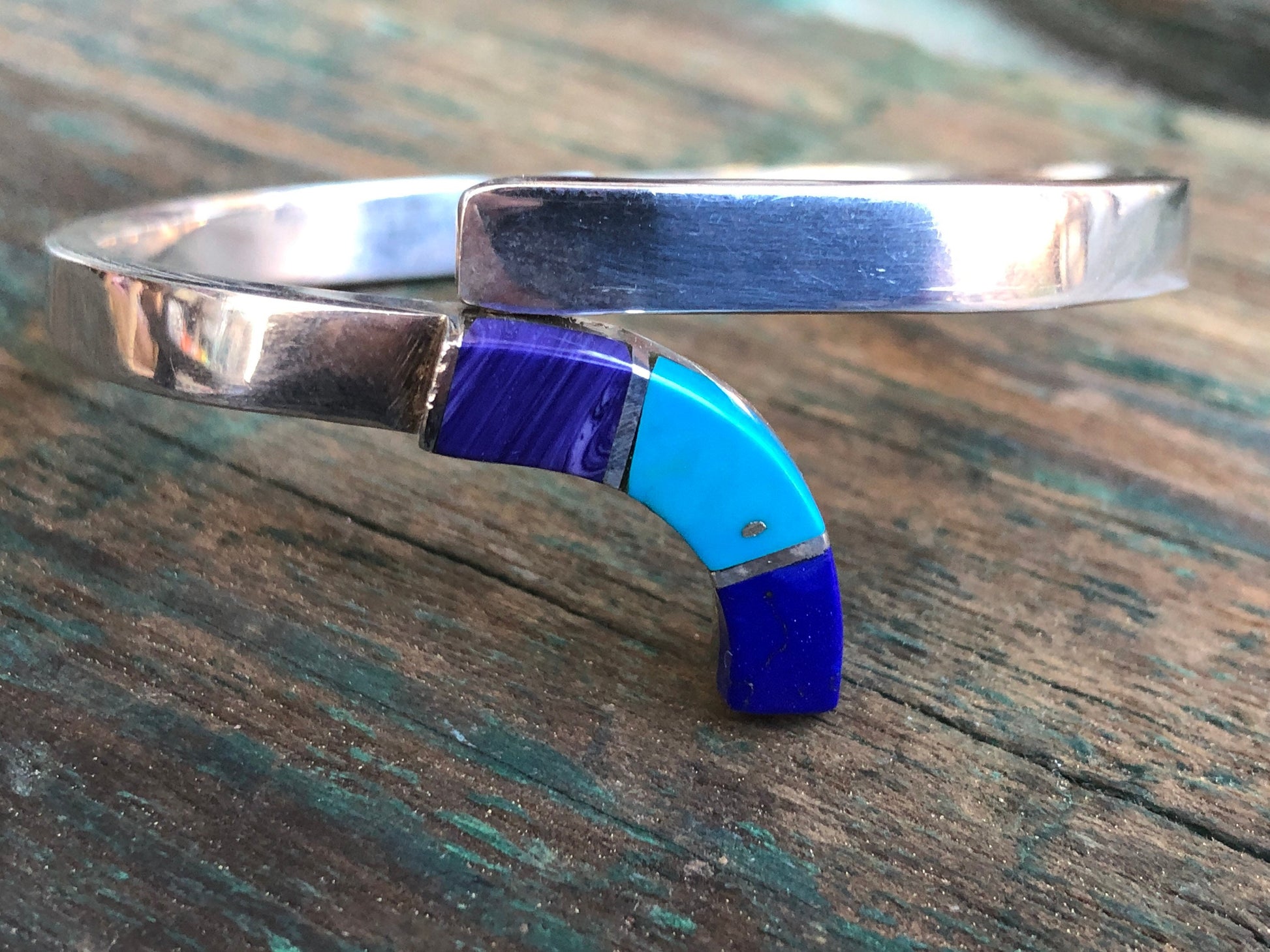Vintage Lapis Lazuli, Turquoise & Purple Wampum Shell, Spiny Oyster Sterling Silver Hinged Native Taxco Mexican Bangle Bracelet
