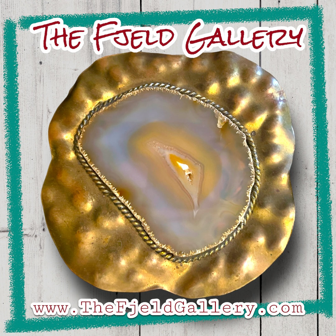 Vintage 1970’s Large Brass Agate Gemstone Slice Belt Buckle