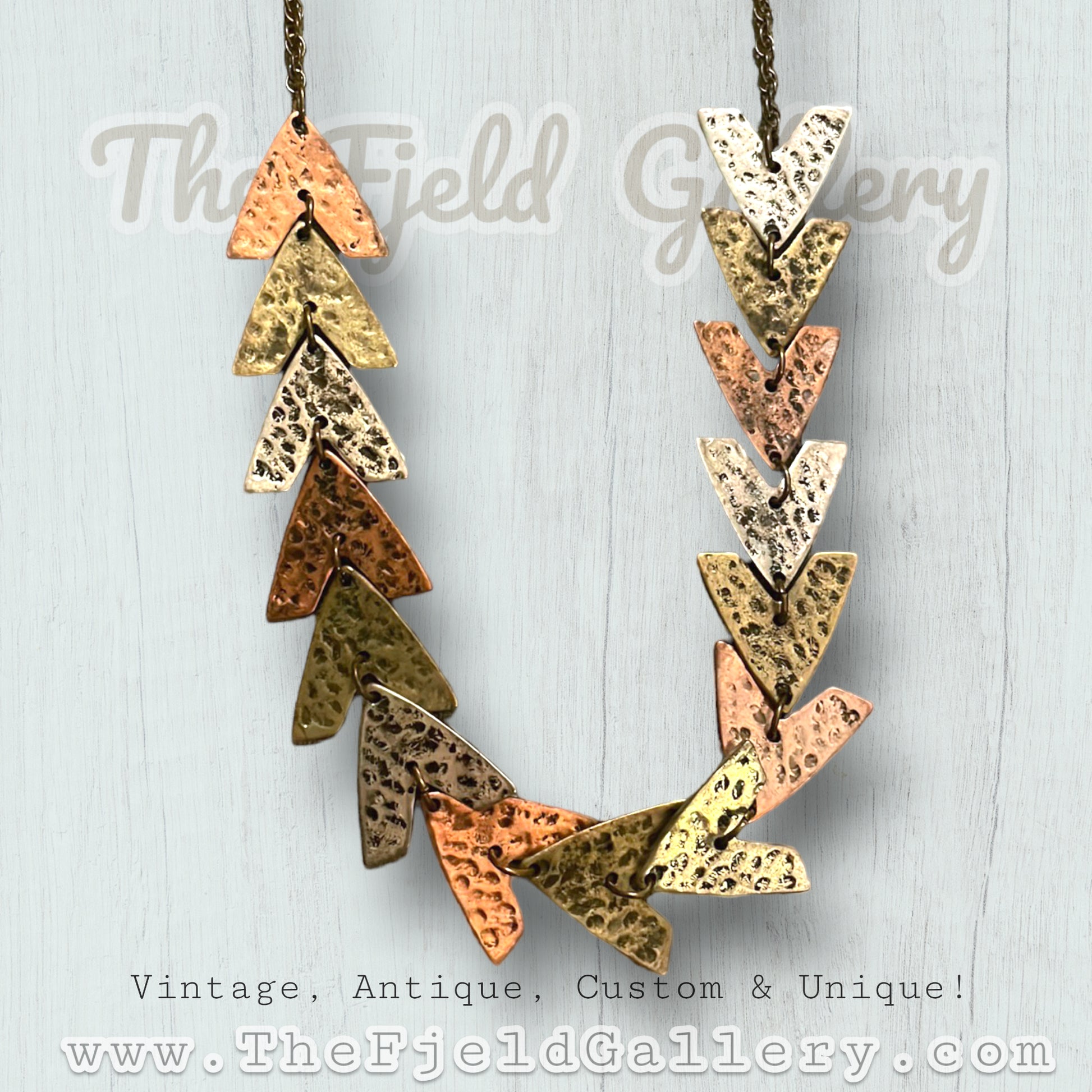 Vintage Mixed Metal Copper, Brass & Silver Geometric Arrow Necklace