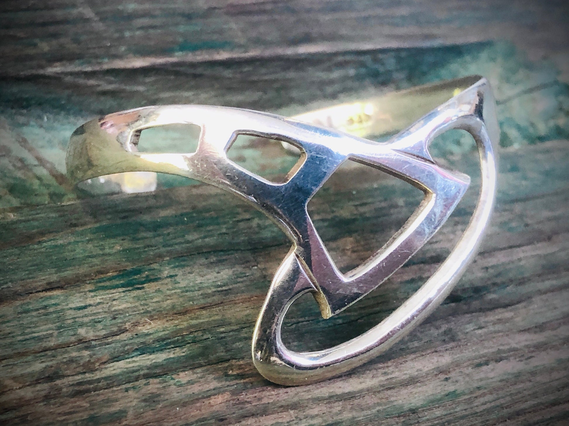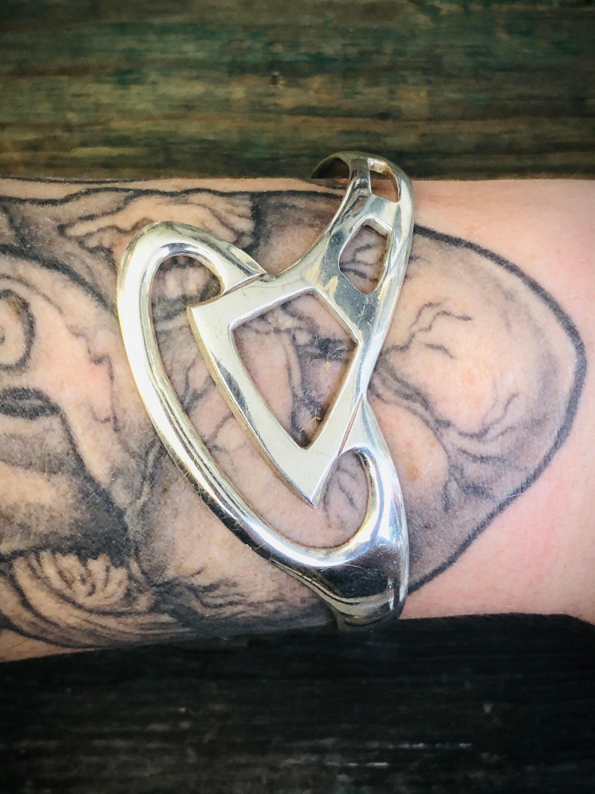 Vintage Modernist Mexican Geometric Chevron Sterling Silver Cuff Bracelet