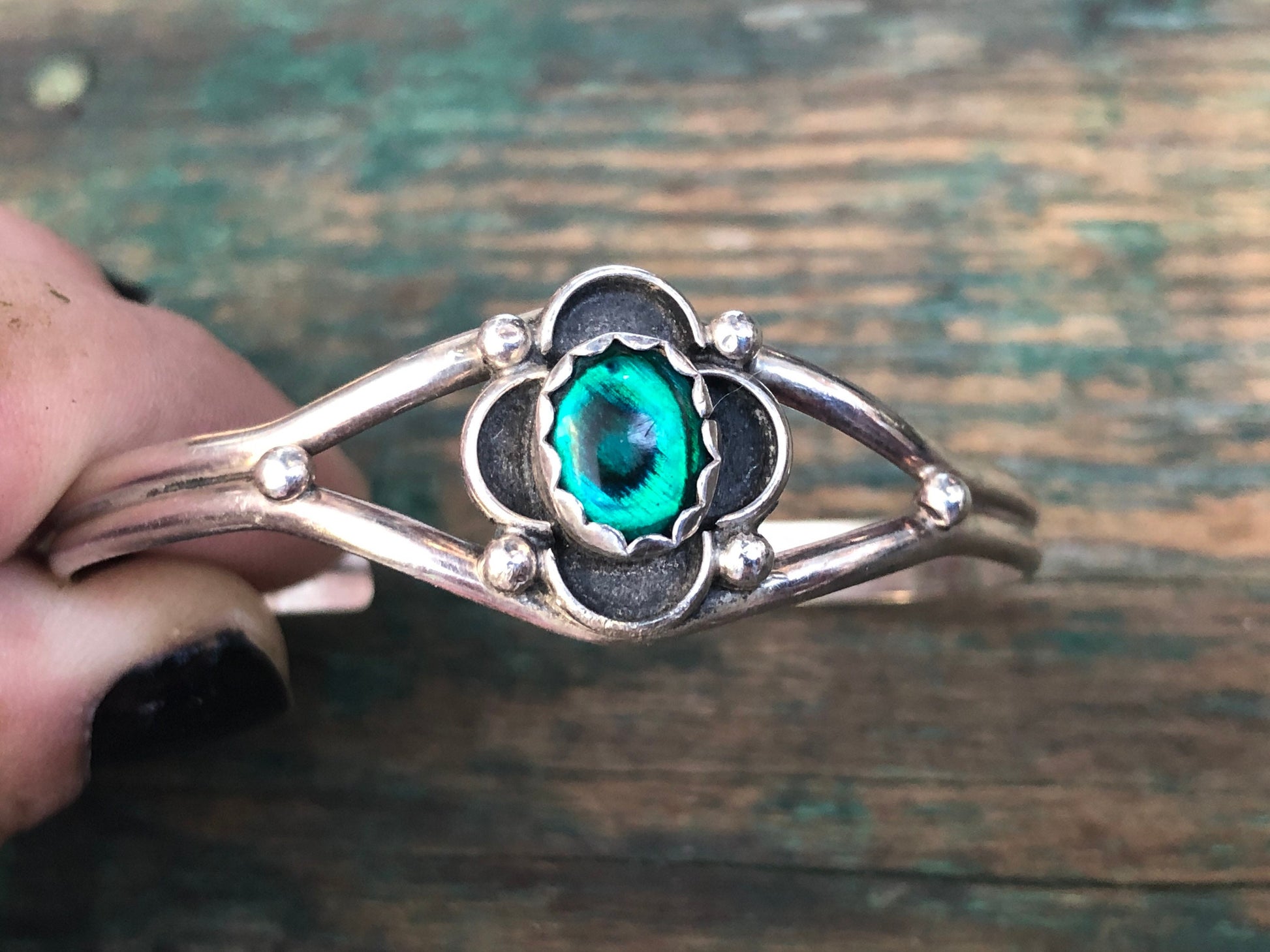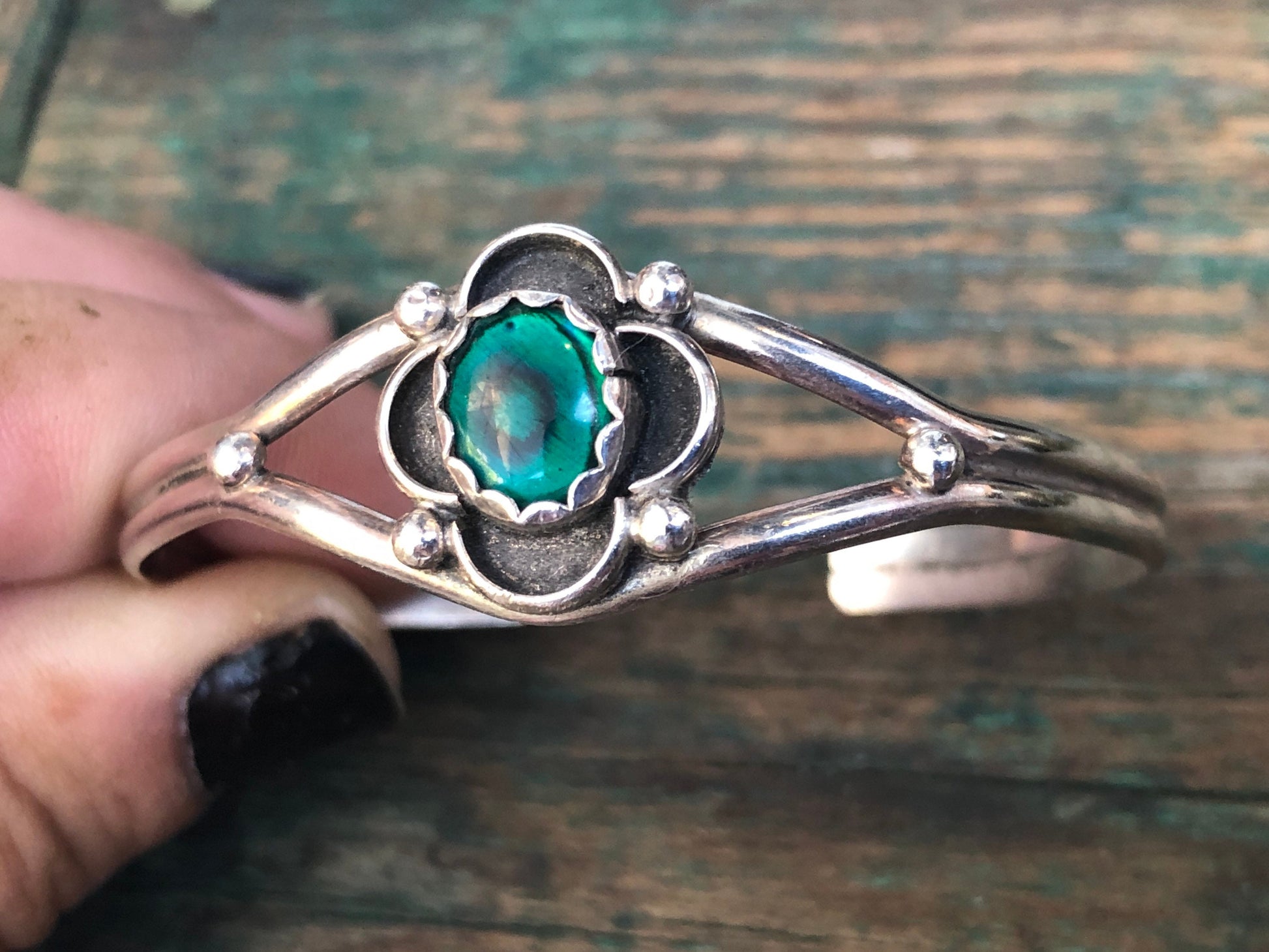 Vintage Native American Sterling Silver & Abalone Cuff Bracelet