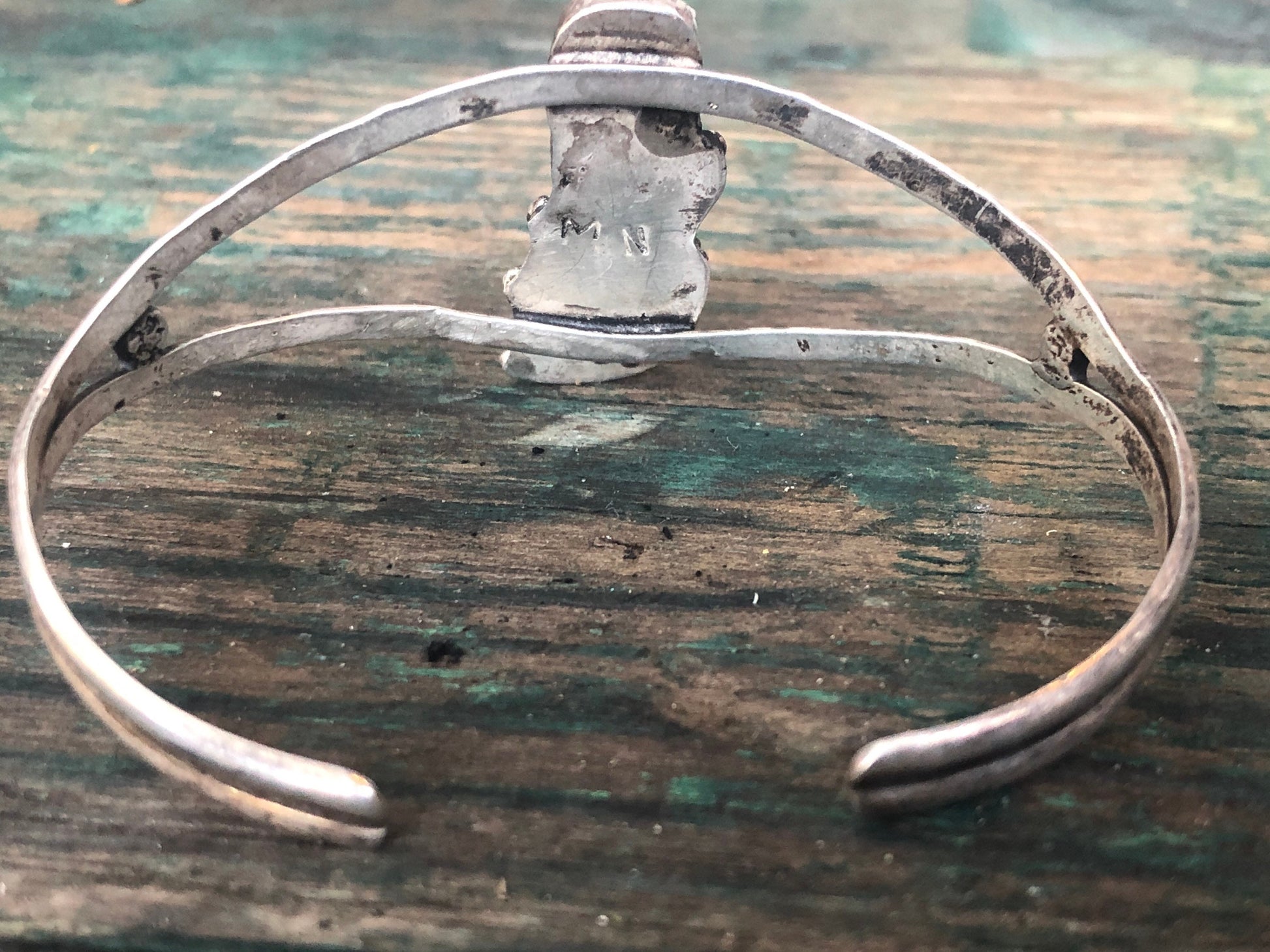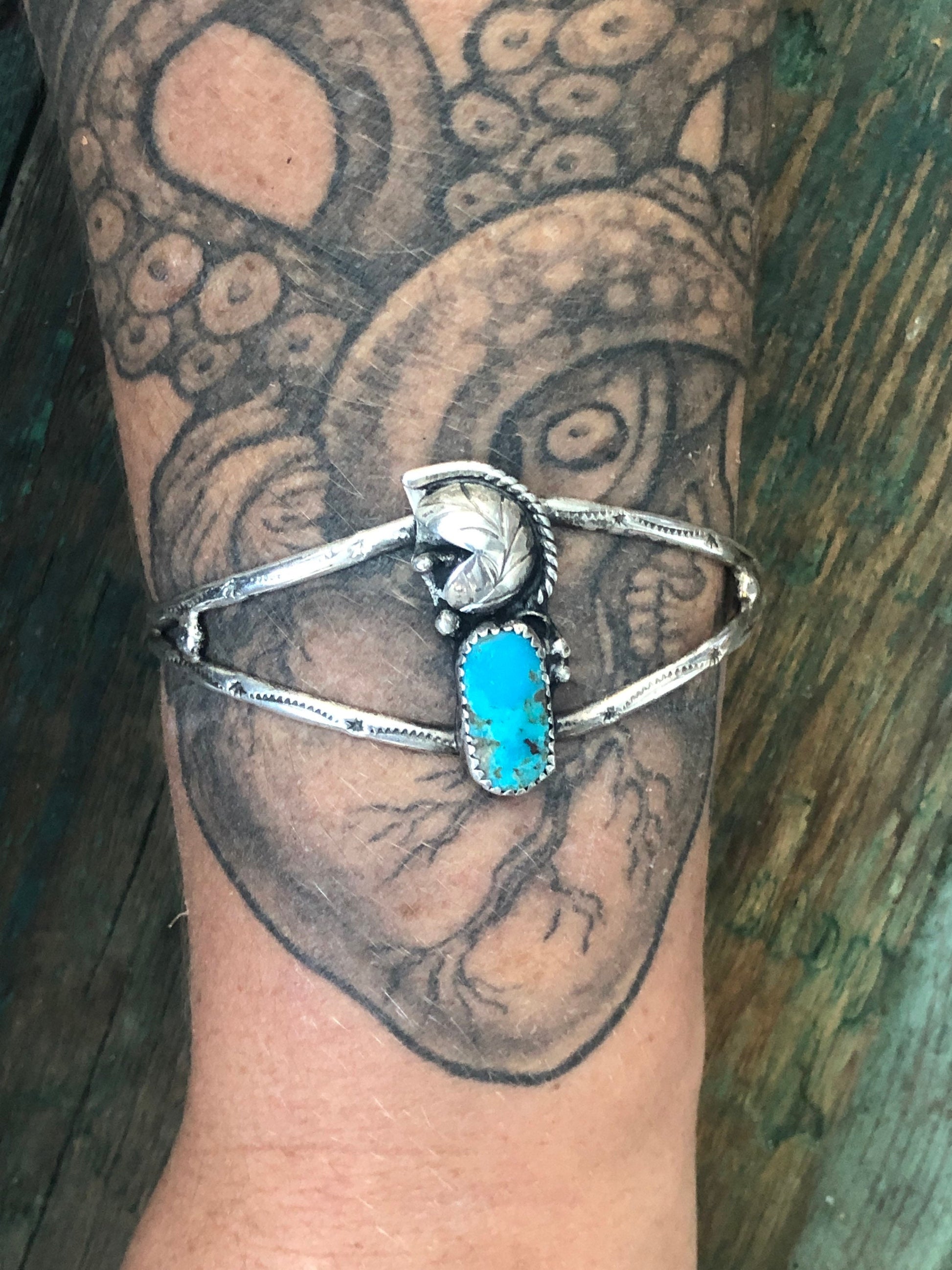 Navajo Native American Sterling Silver Turquoise Dapped Leaf Cuff Bracelet