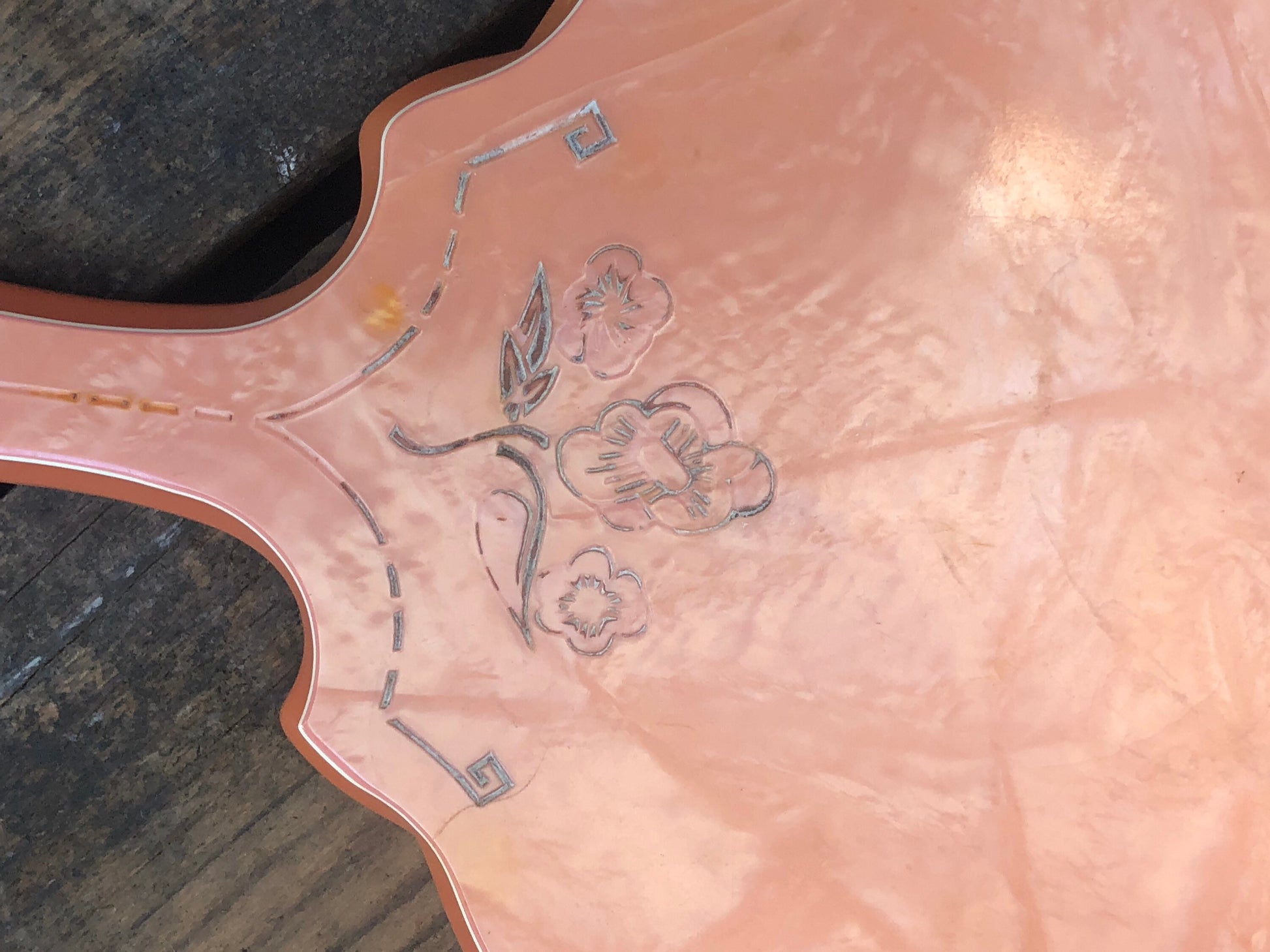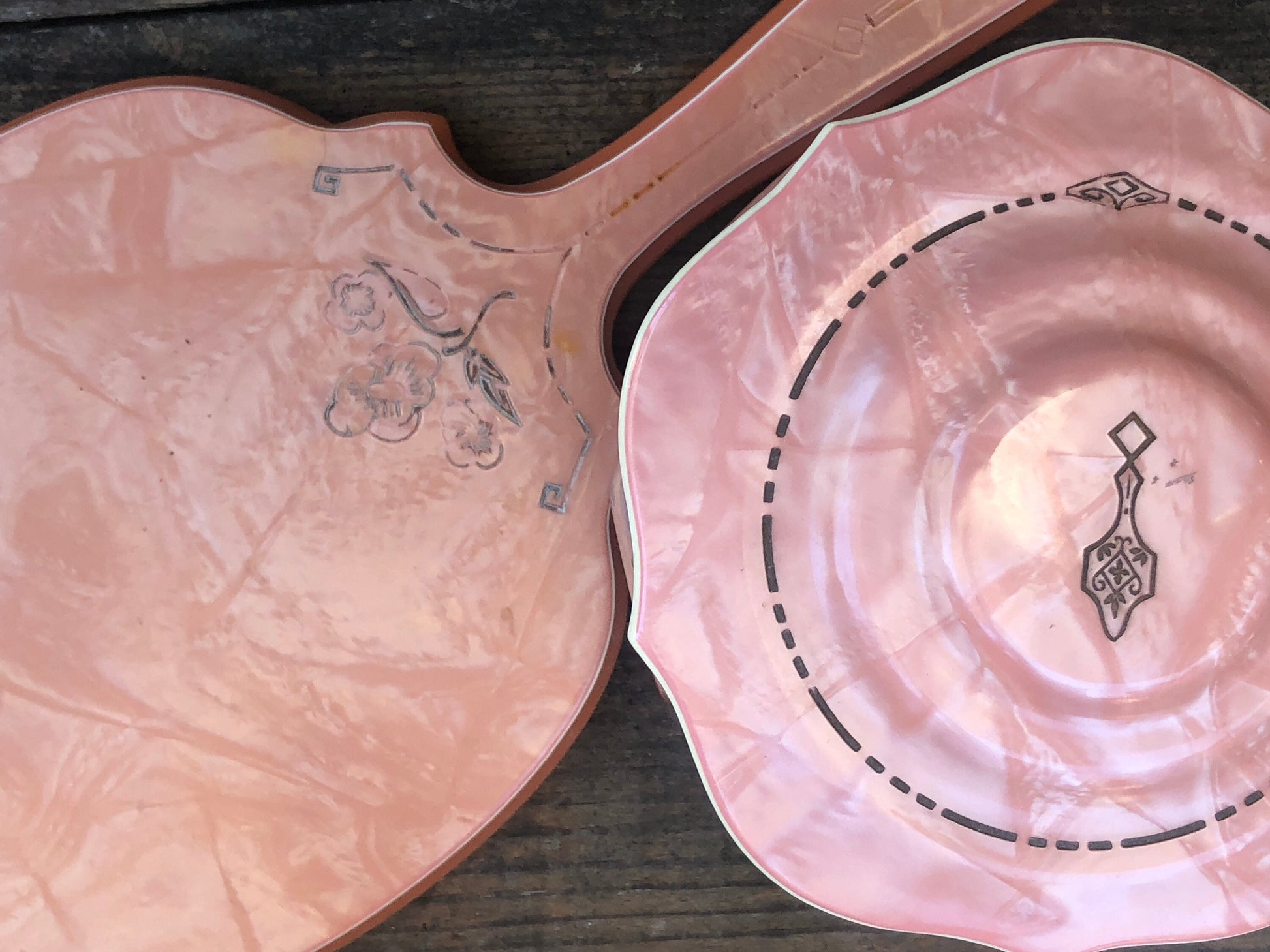 Vintage DuPont Pink Marbleized Vanity Set Mirror & Glass Jar
