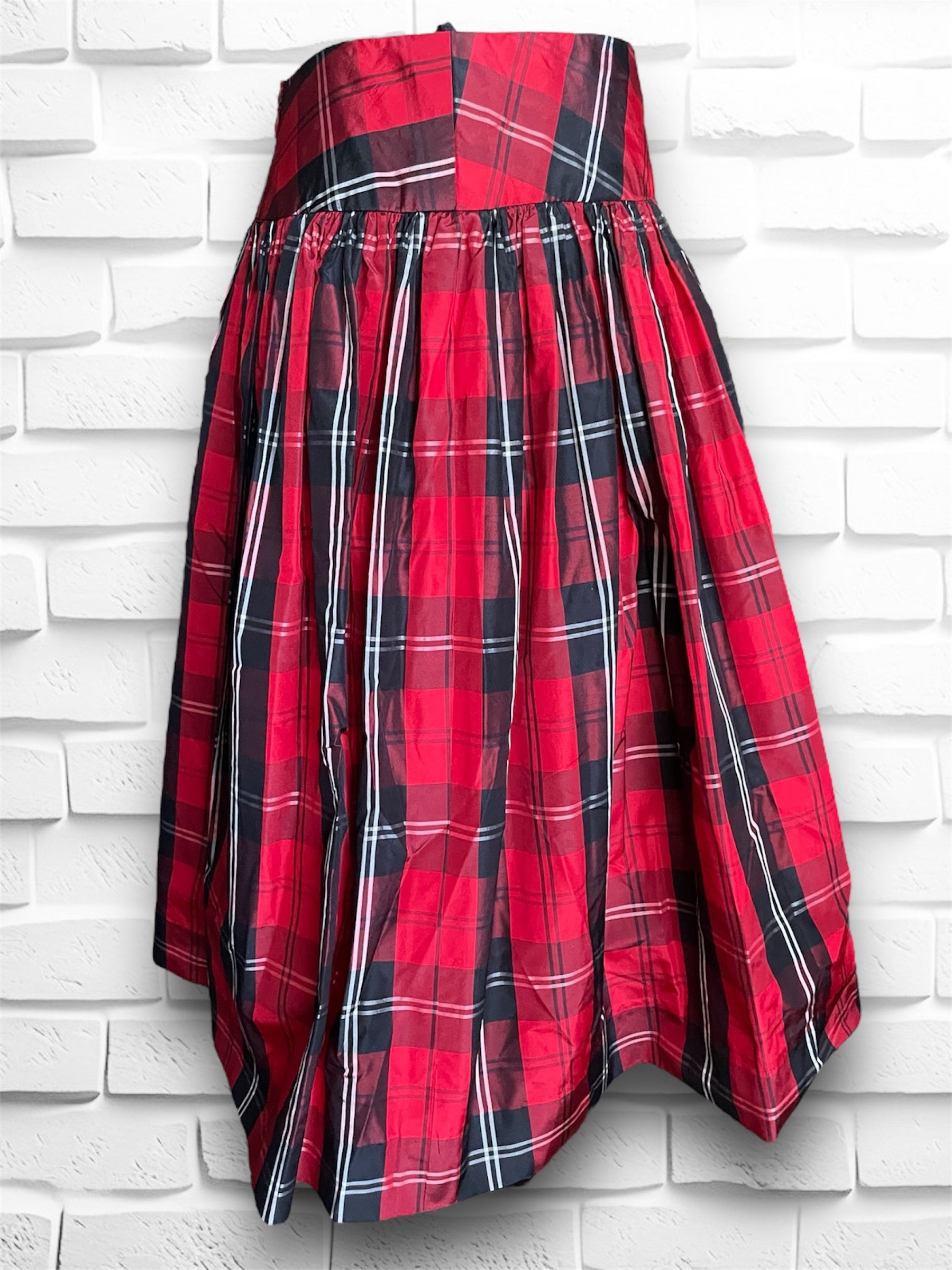 Vintage Red, Black & White Plaid Full Mid-Calf Holiday Silk Skirt