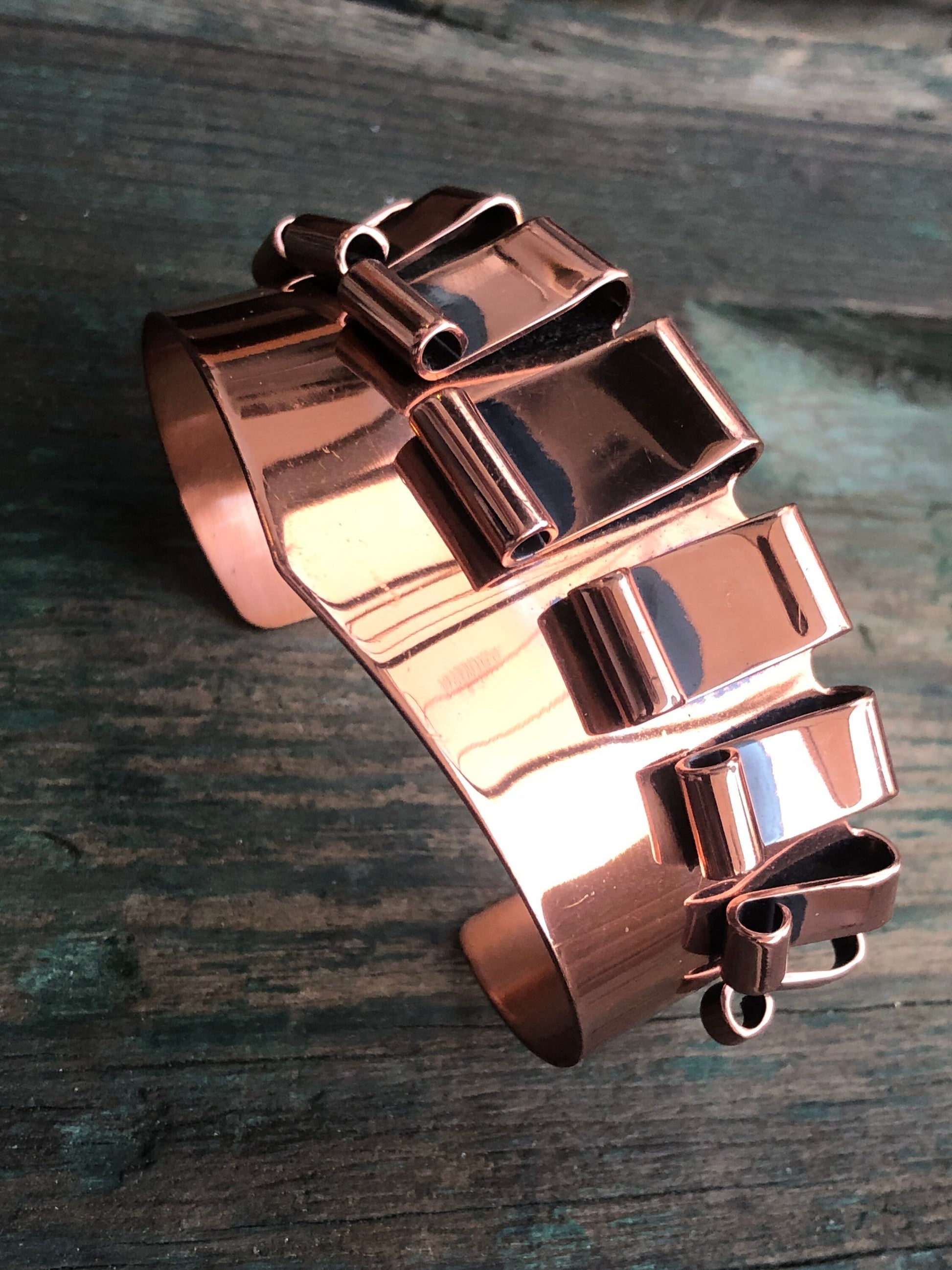 Vintage Renoir Copper Chevron 3D Unique Cuff Bracelet