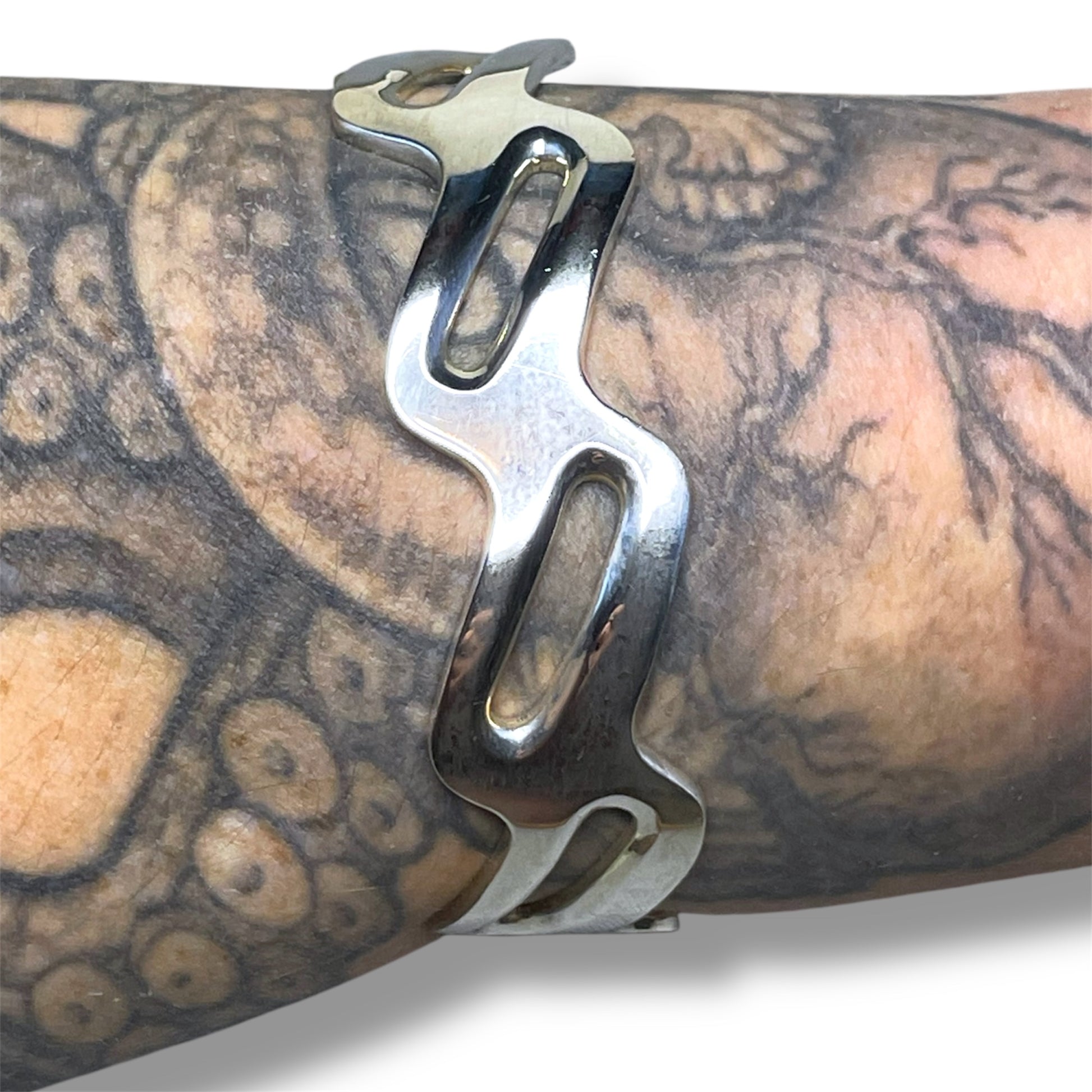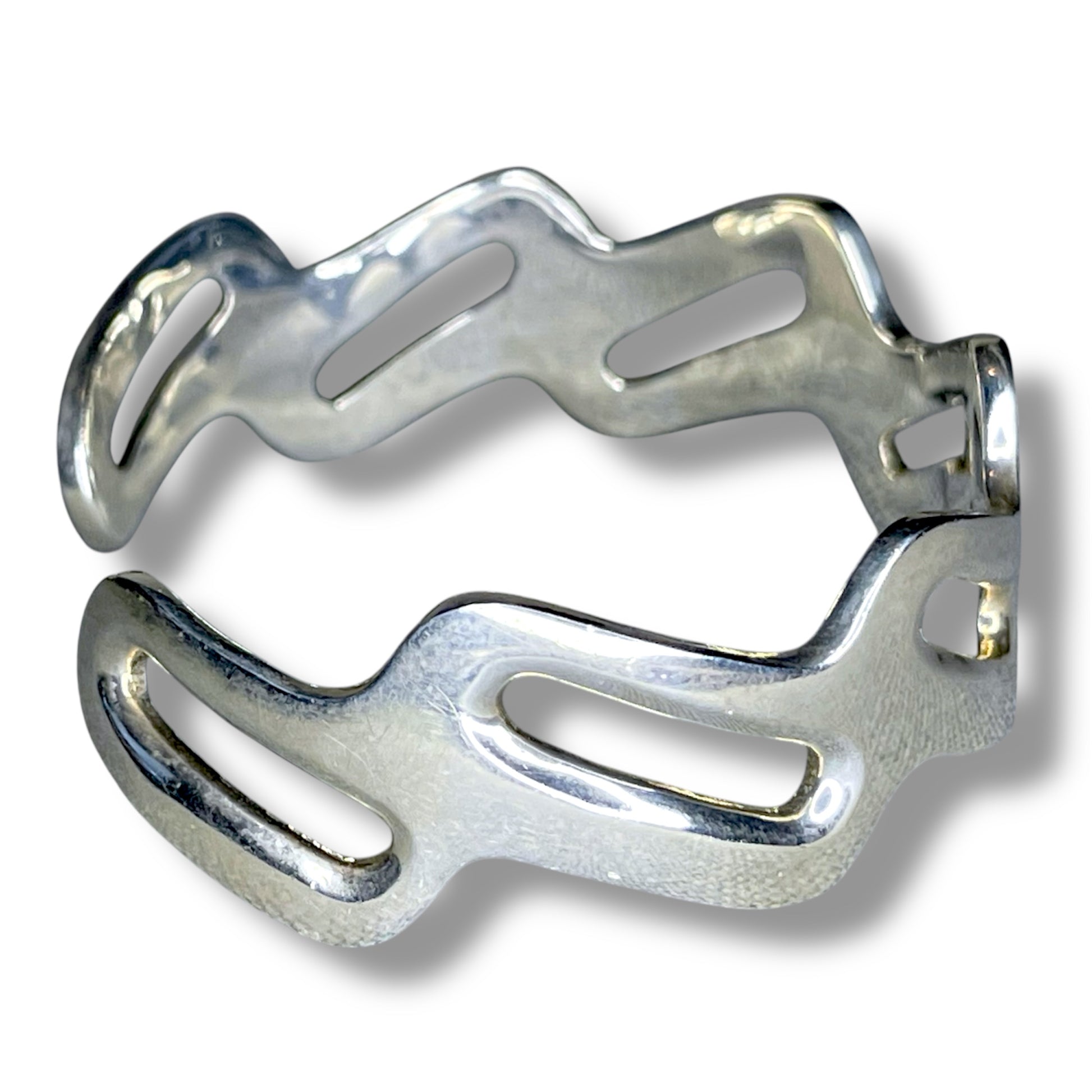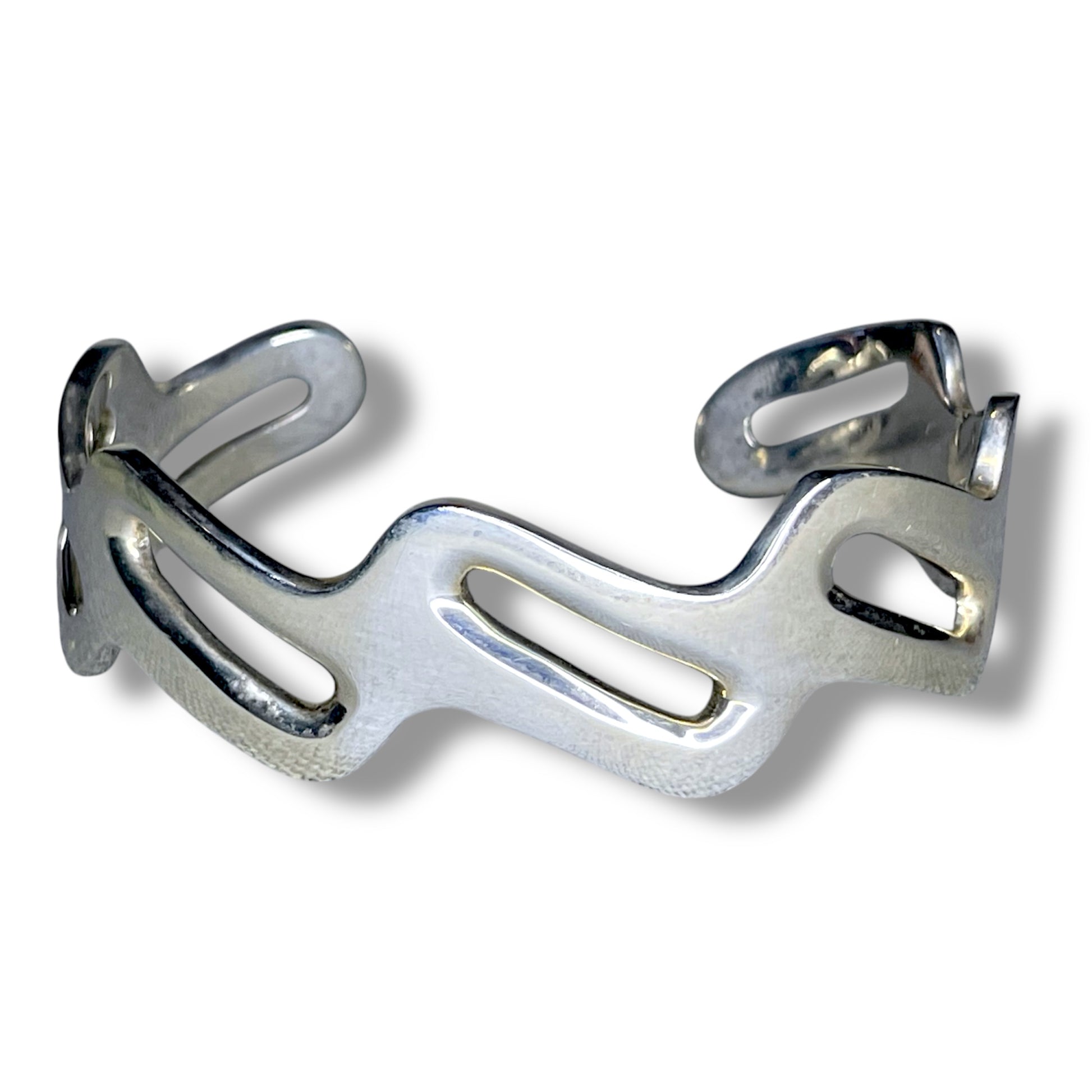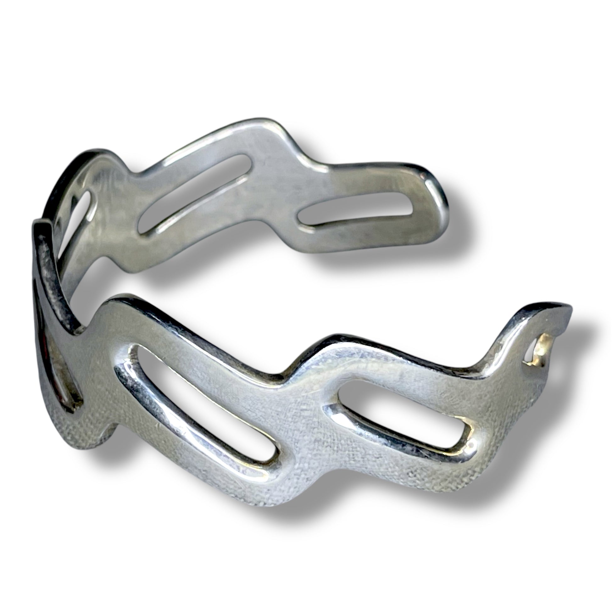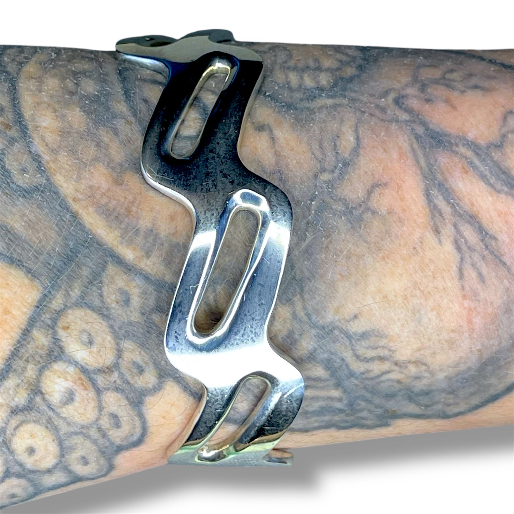 Vintage Solid Heavy Sterling Silver Geometric Cuff Bracelet