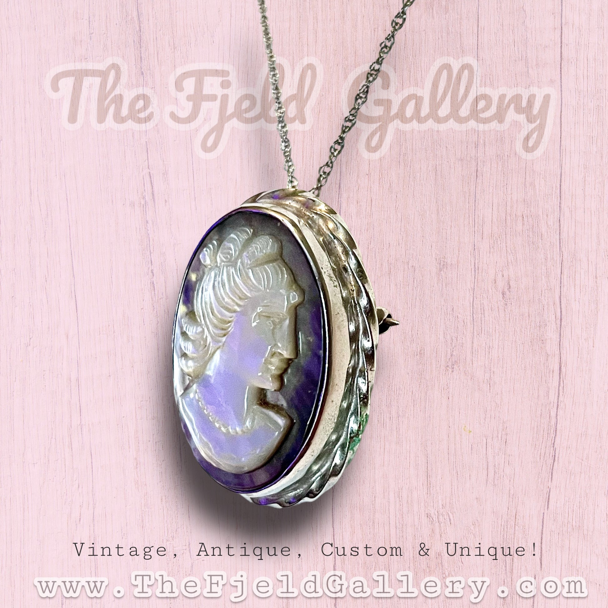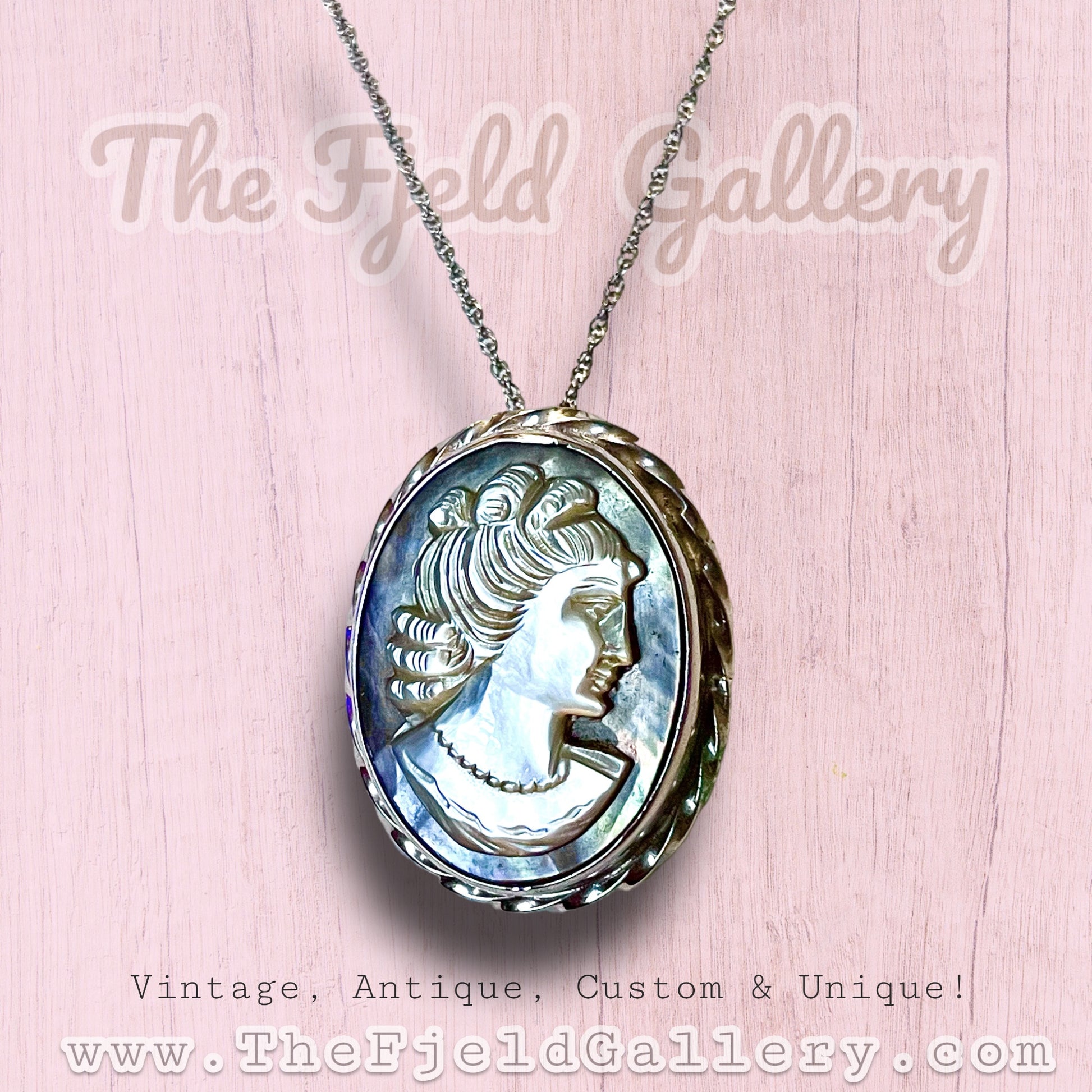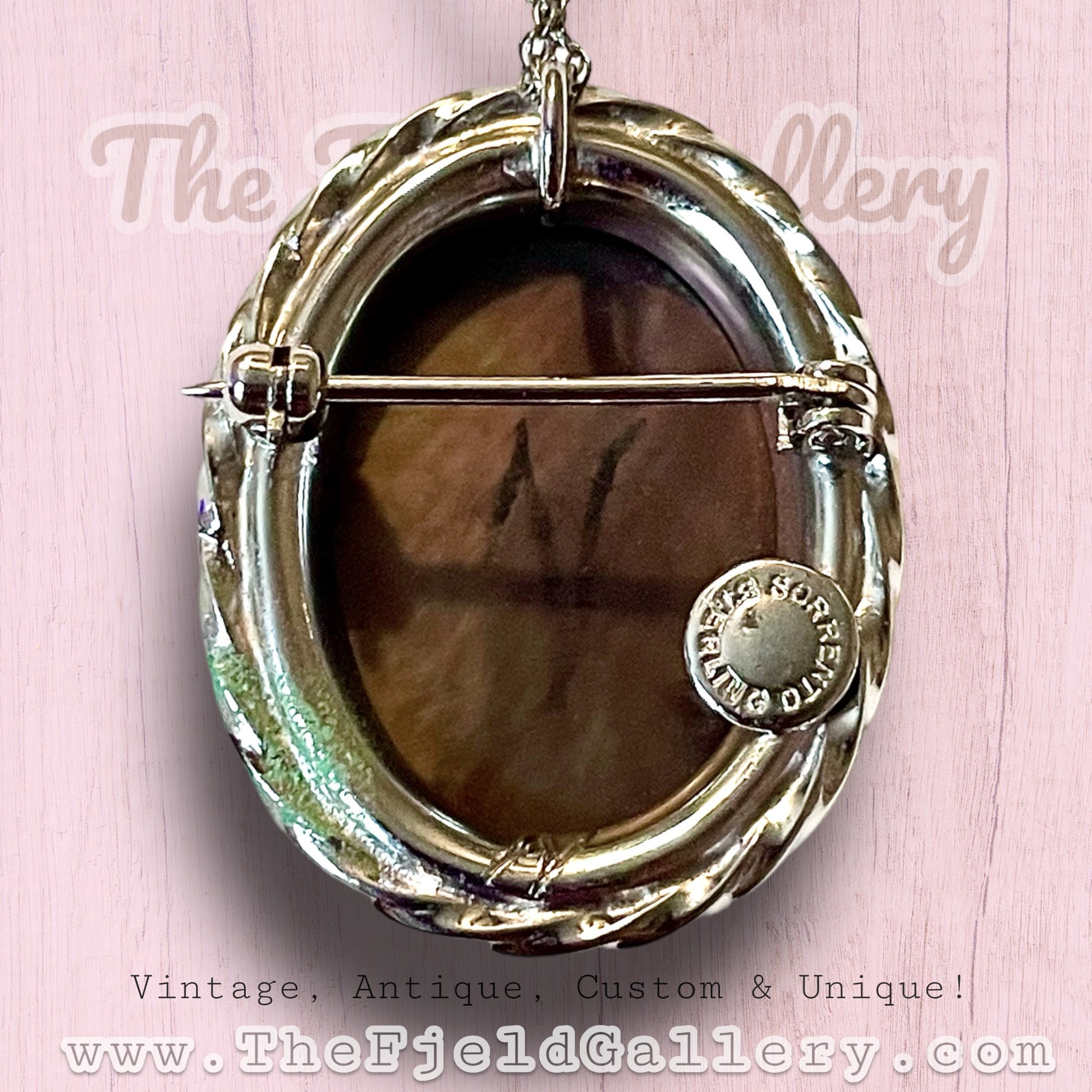 Vintage Sorrento Sterling Silver Abalone Cameo Necklace