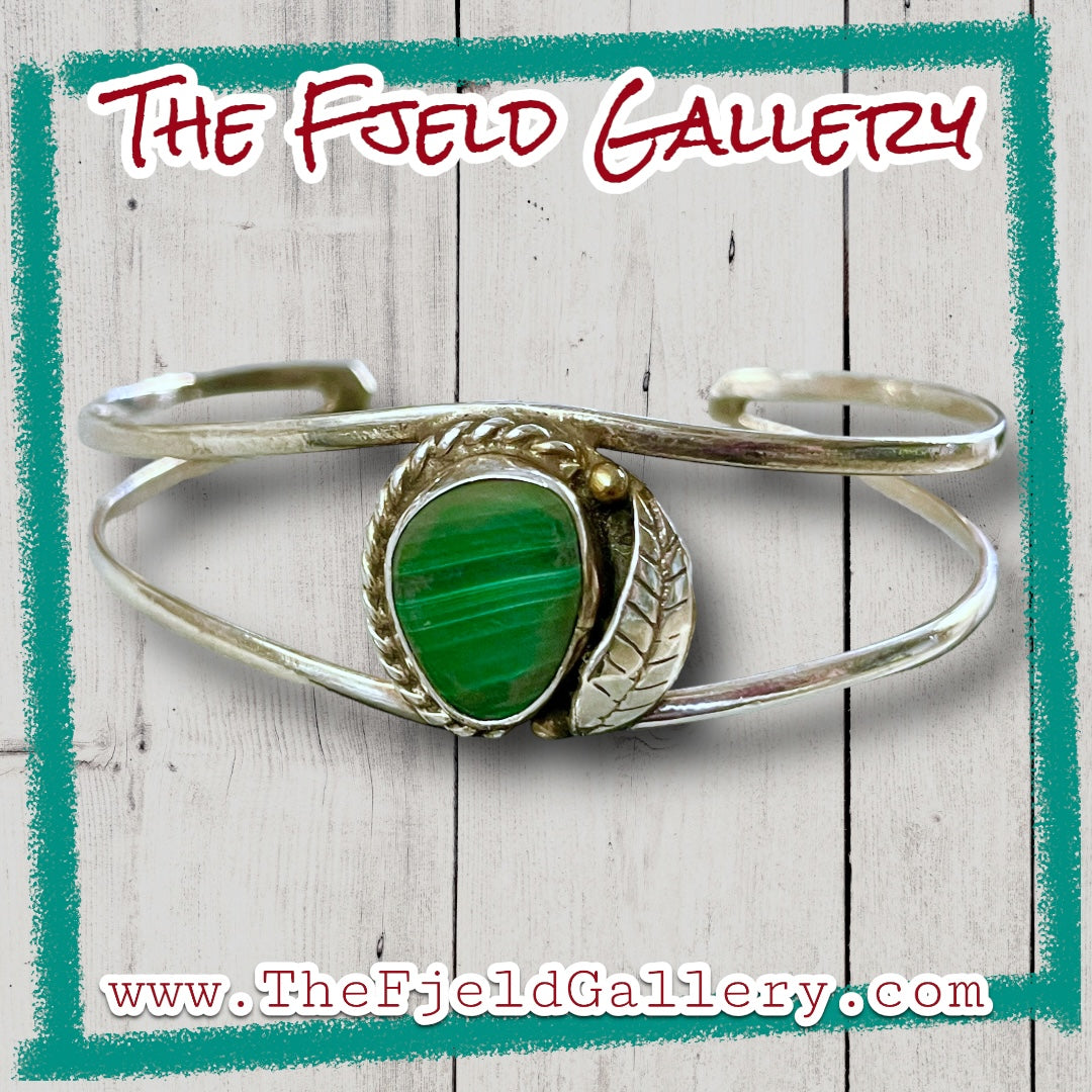 Vintage Southwest Native American Malachite Sterling Cuff Bracelet