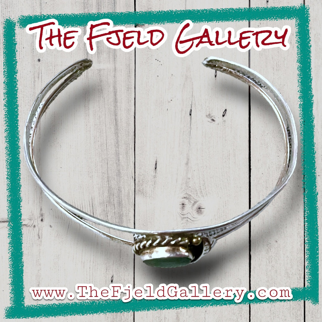 Beautiful vintage sterling silver and green malachite cuff bracelet. Southwestern Native American boho Arts and Crafts period c.1940 Hallmarked Sterling and something else on the other band also that I can’t quite make out.