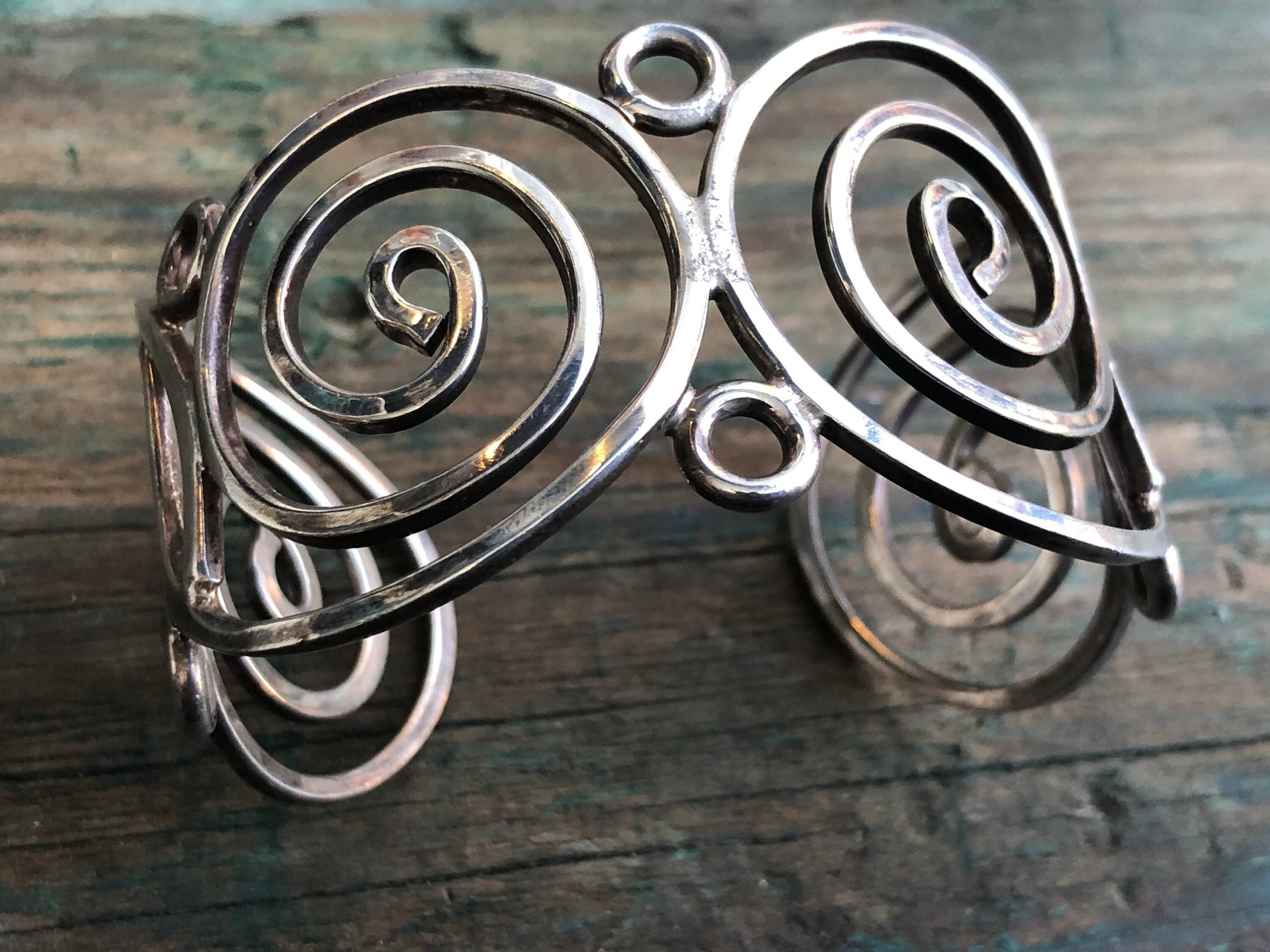 Vintage Sterling Modernist Swirl Cuff Bracelet