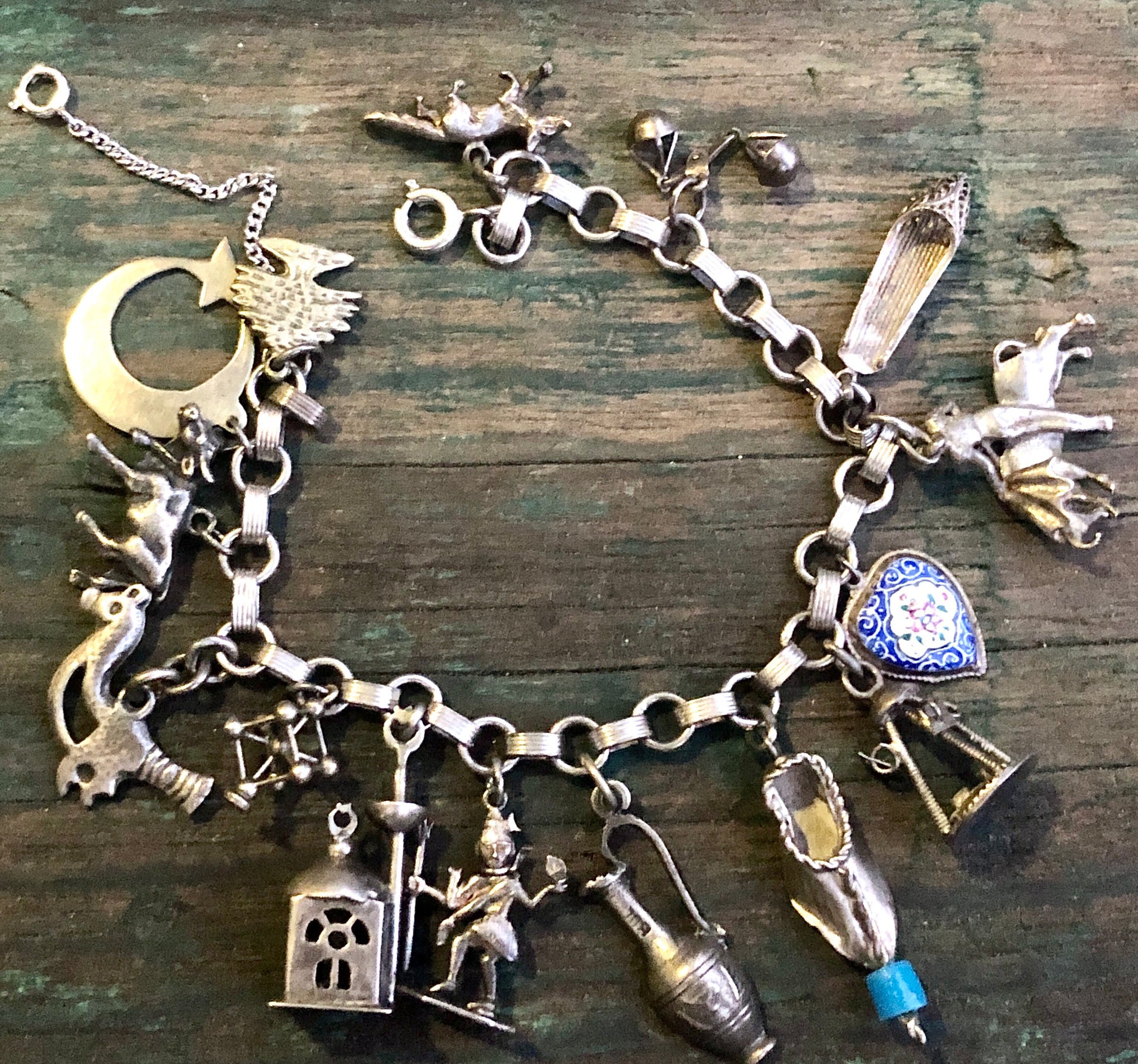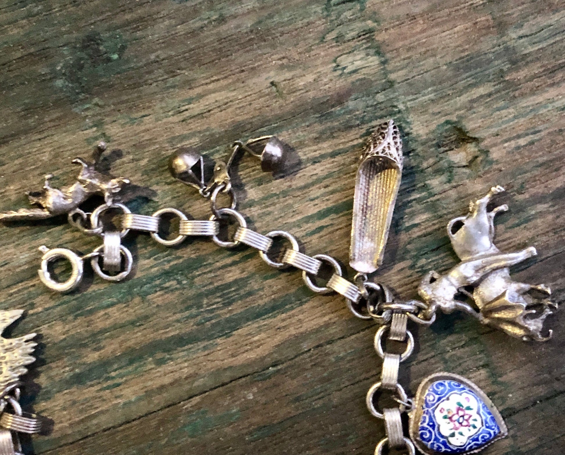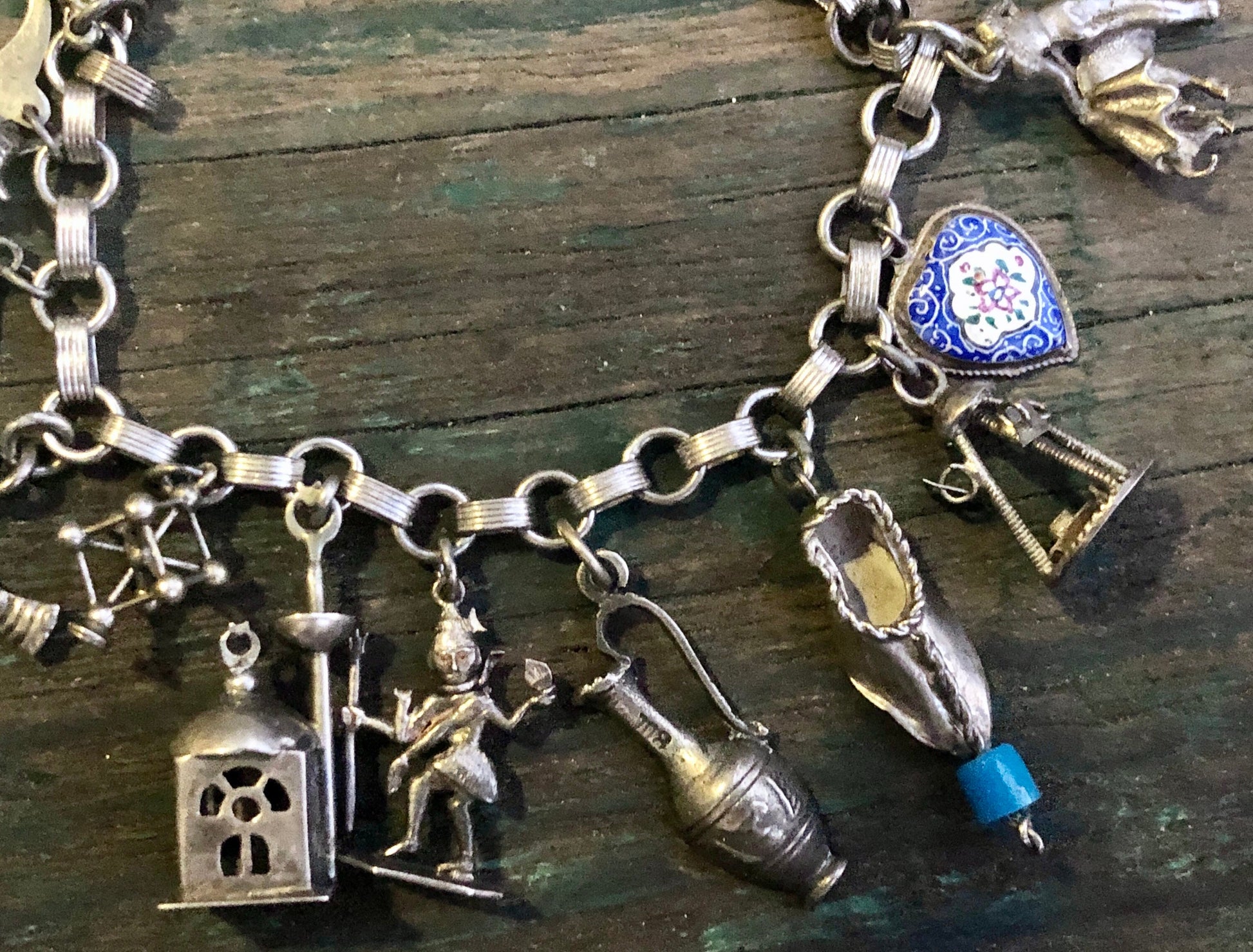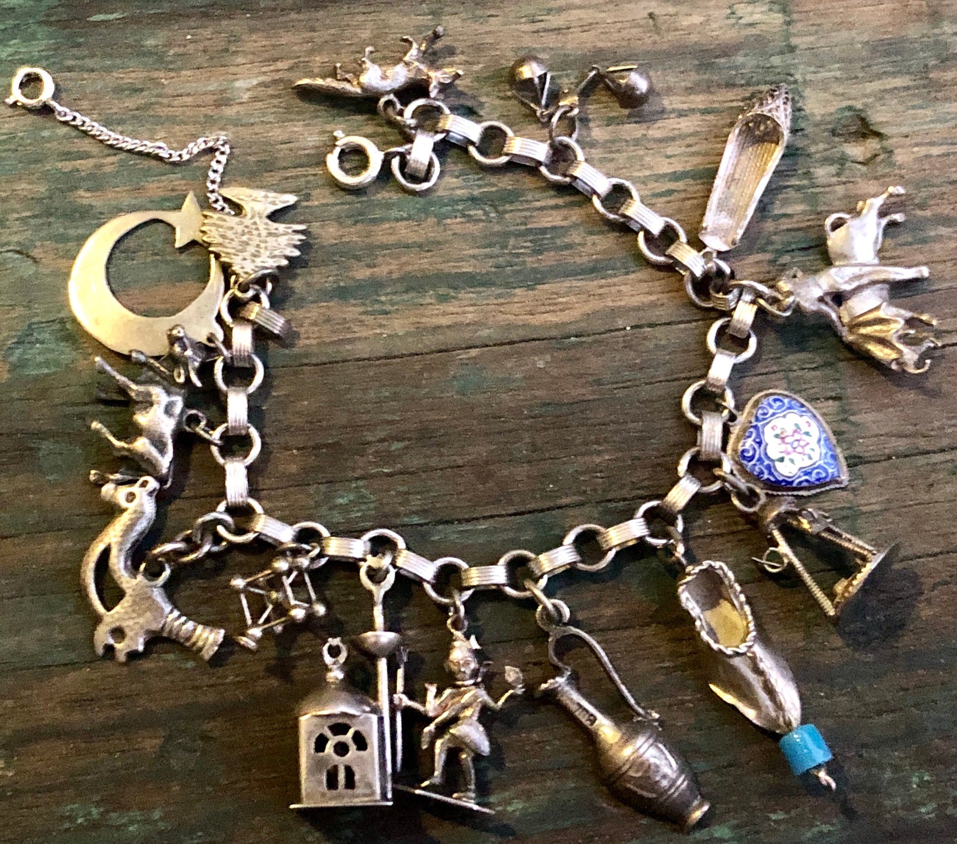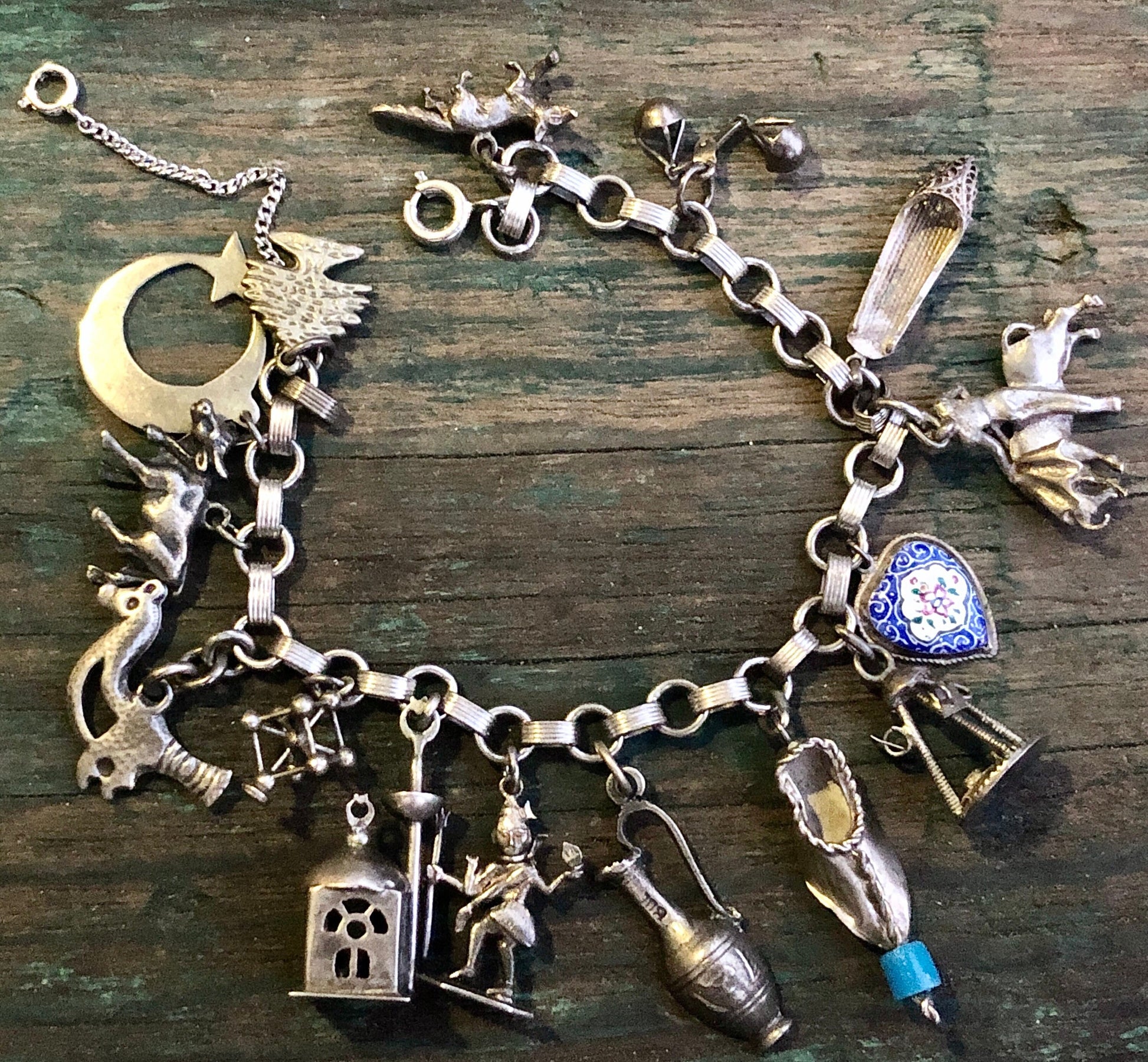 Vintage Sterling Silver Charm Bracelet with Sterling Charms: