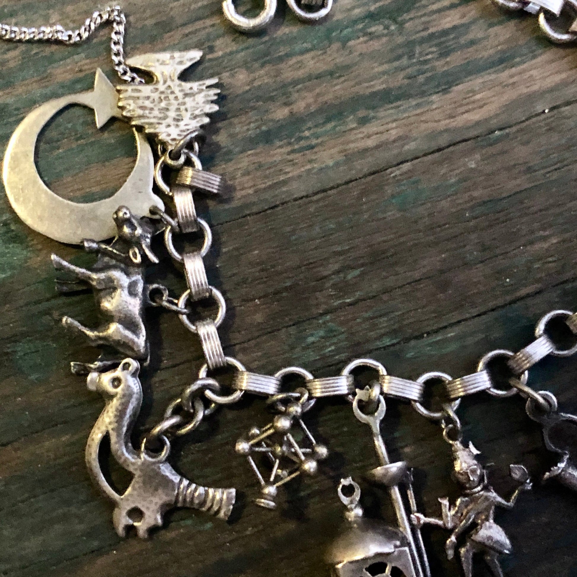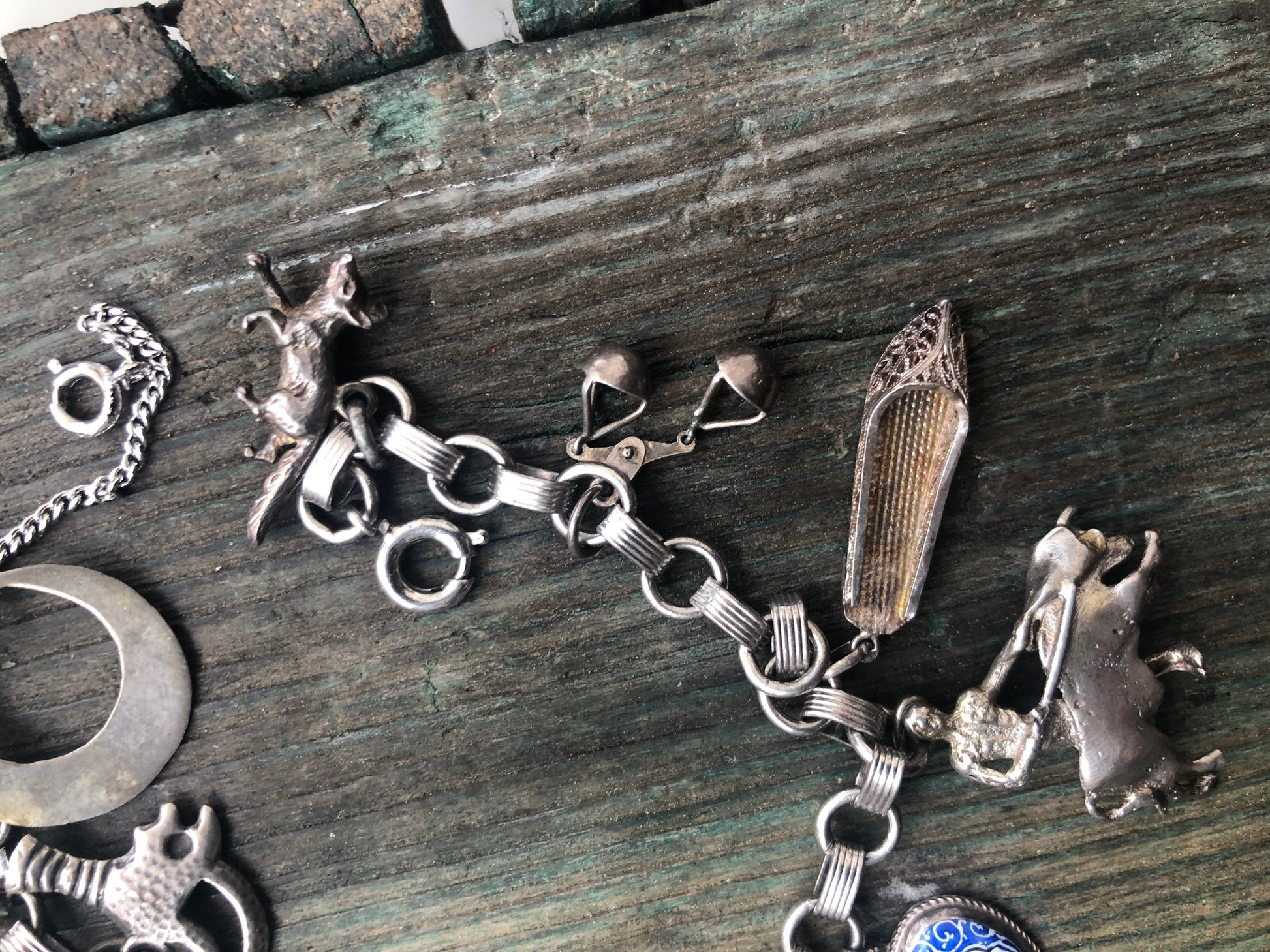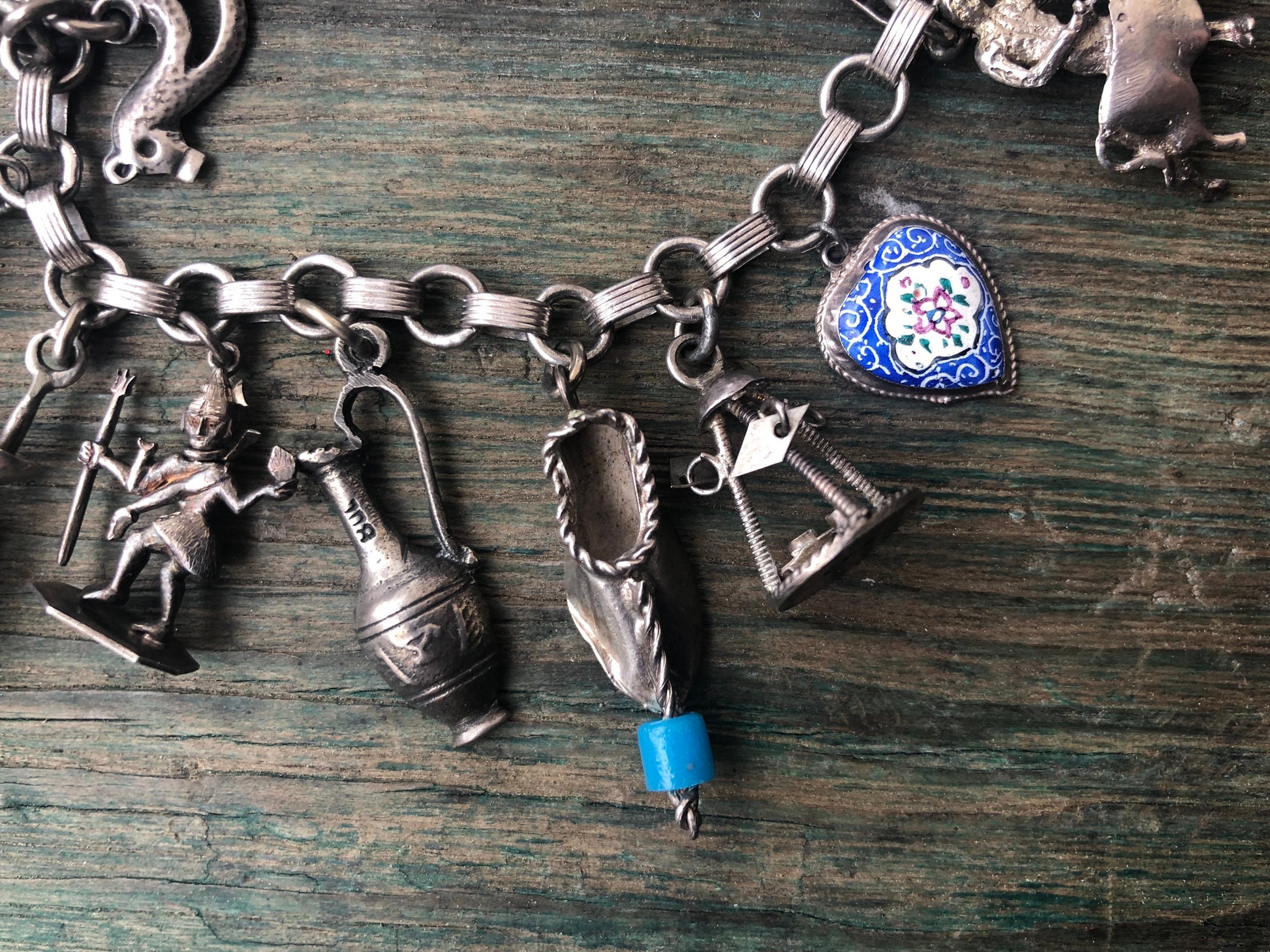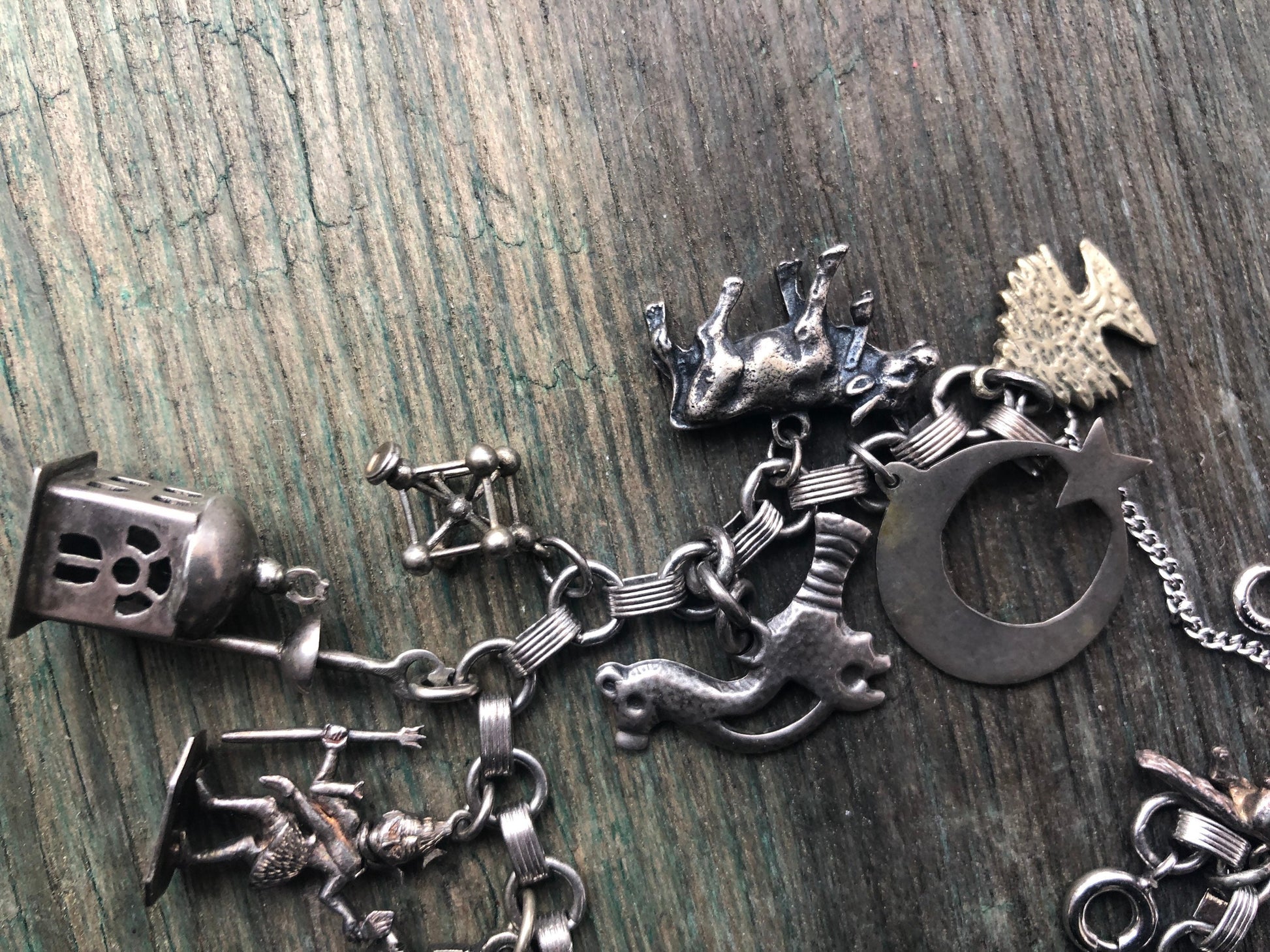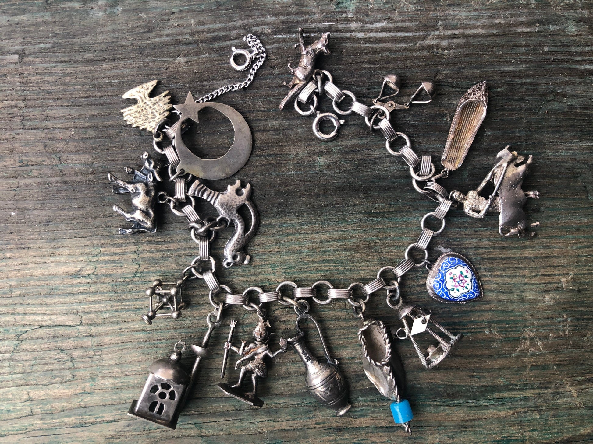 Vintage Sterling Silver Charm Bracelet with Sterling Charms: