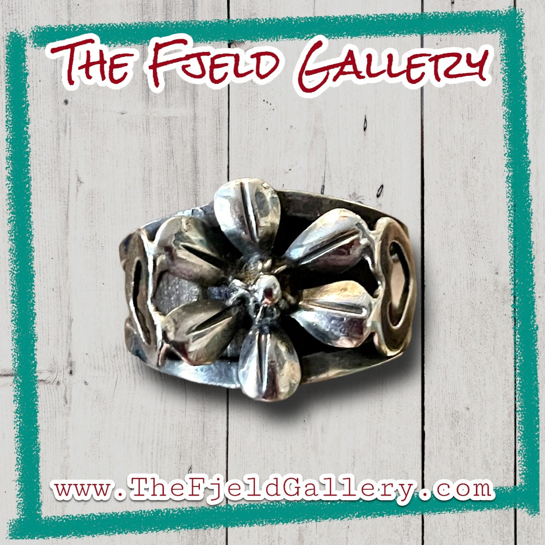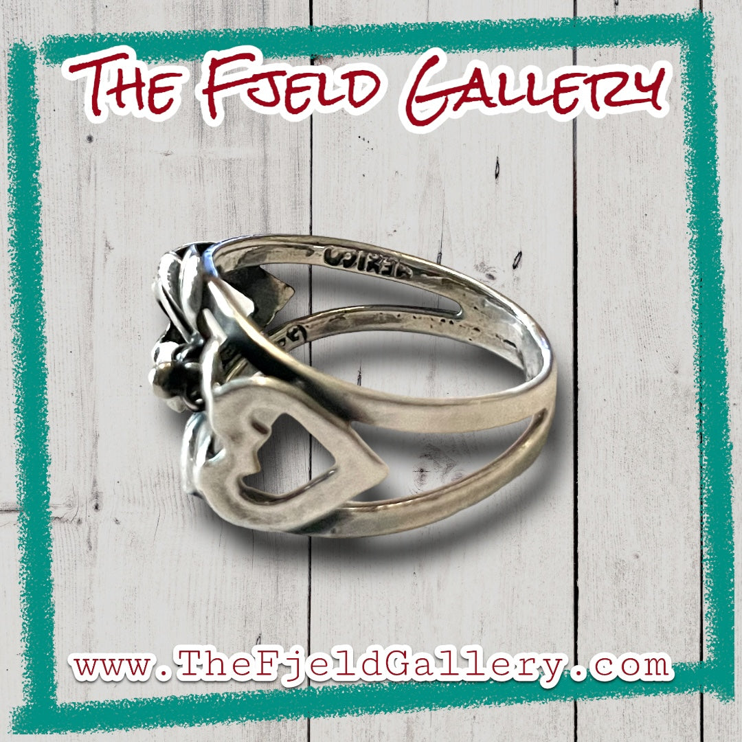Vintage Sterling Silver Hearts & Daisy Flower Ring