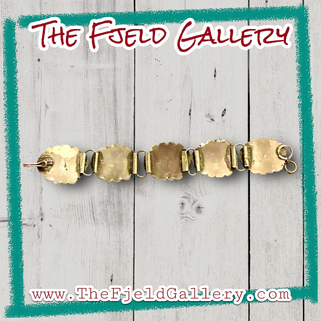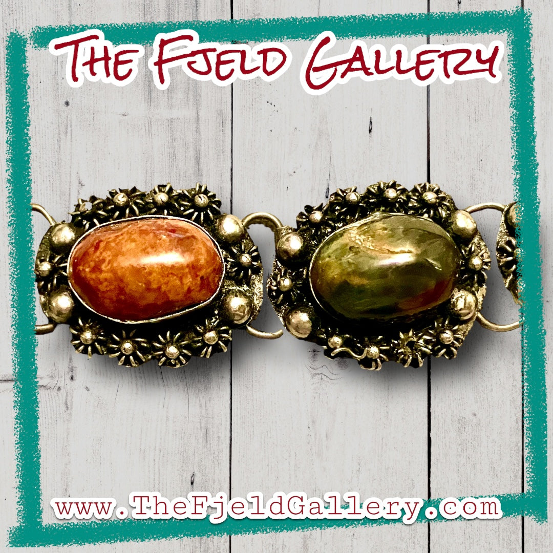 Vintage Sterling Silver Multi Gemstone Agate & Jasper Gemstone Panel Bracelet