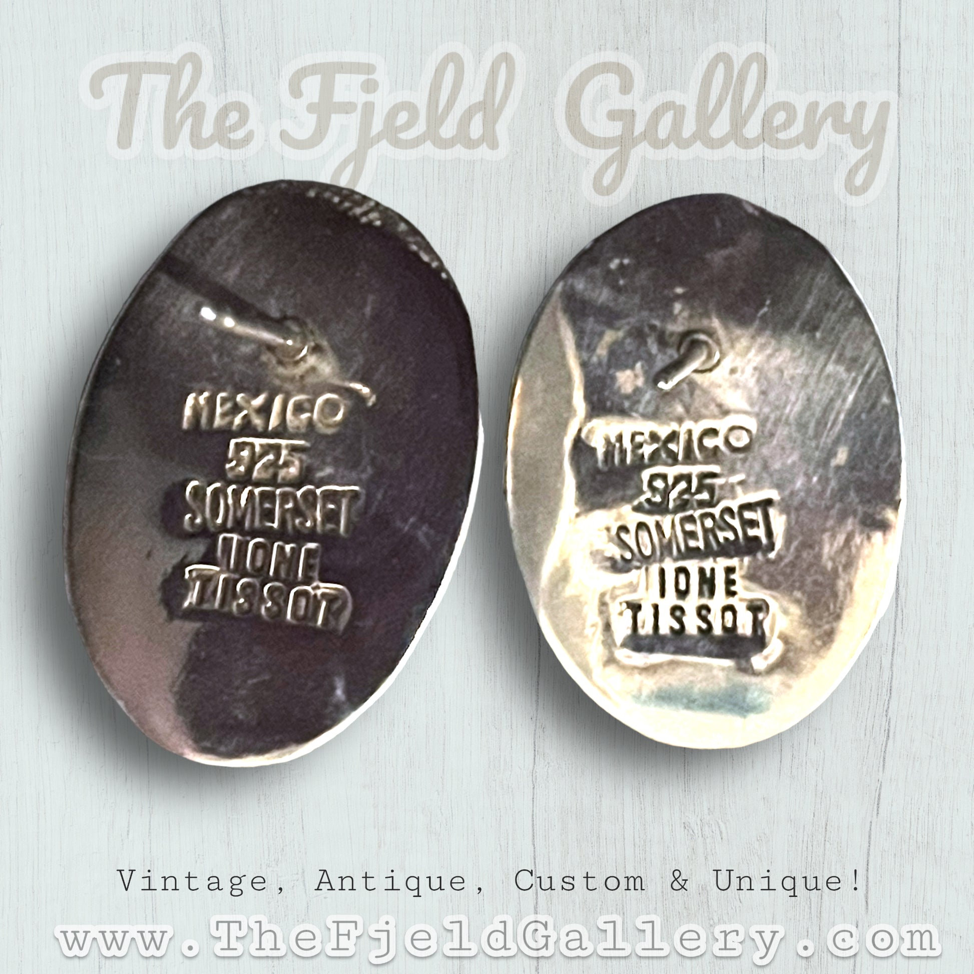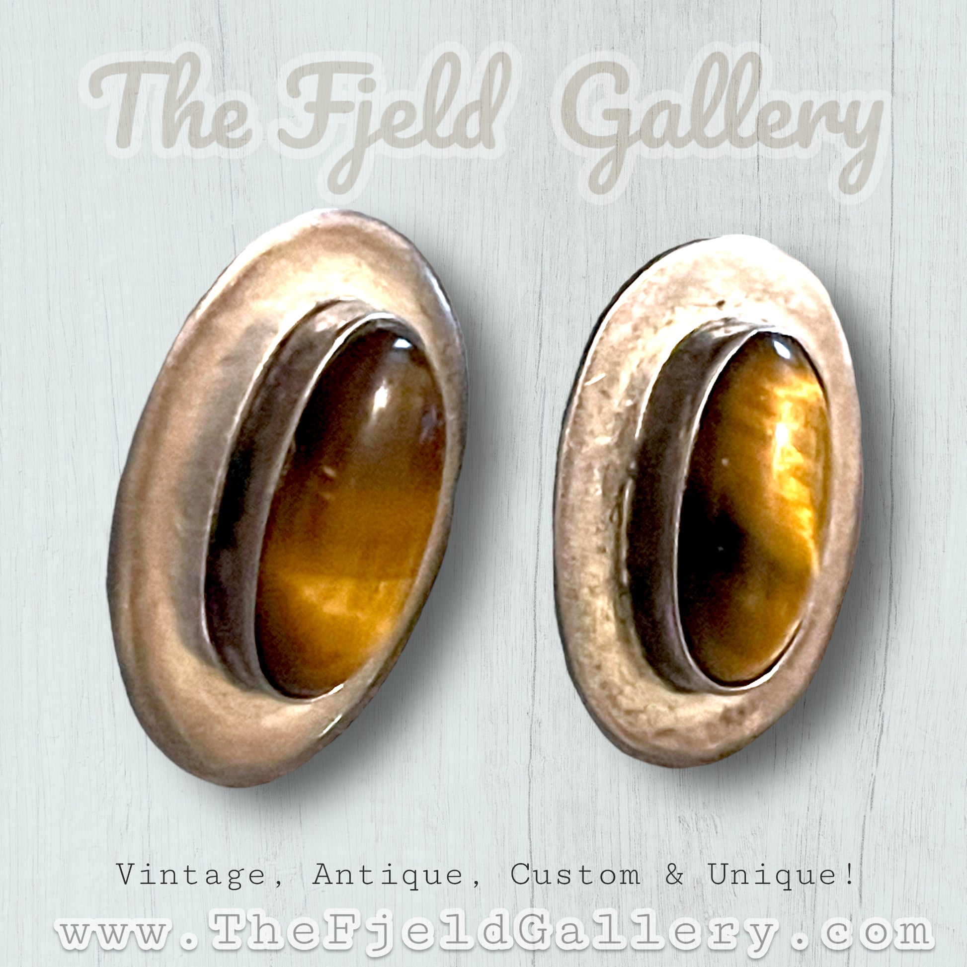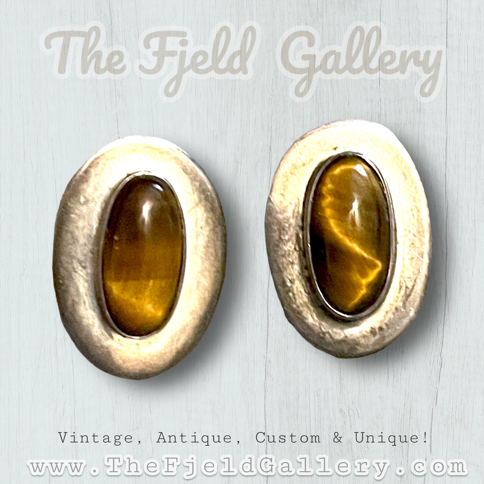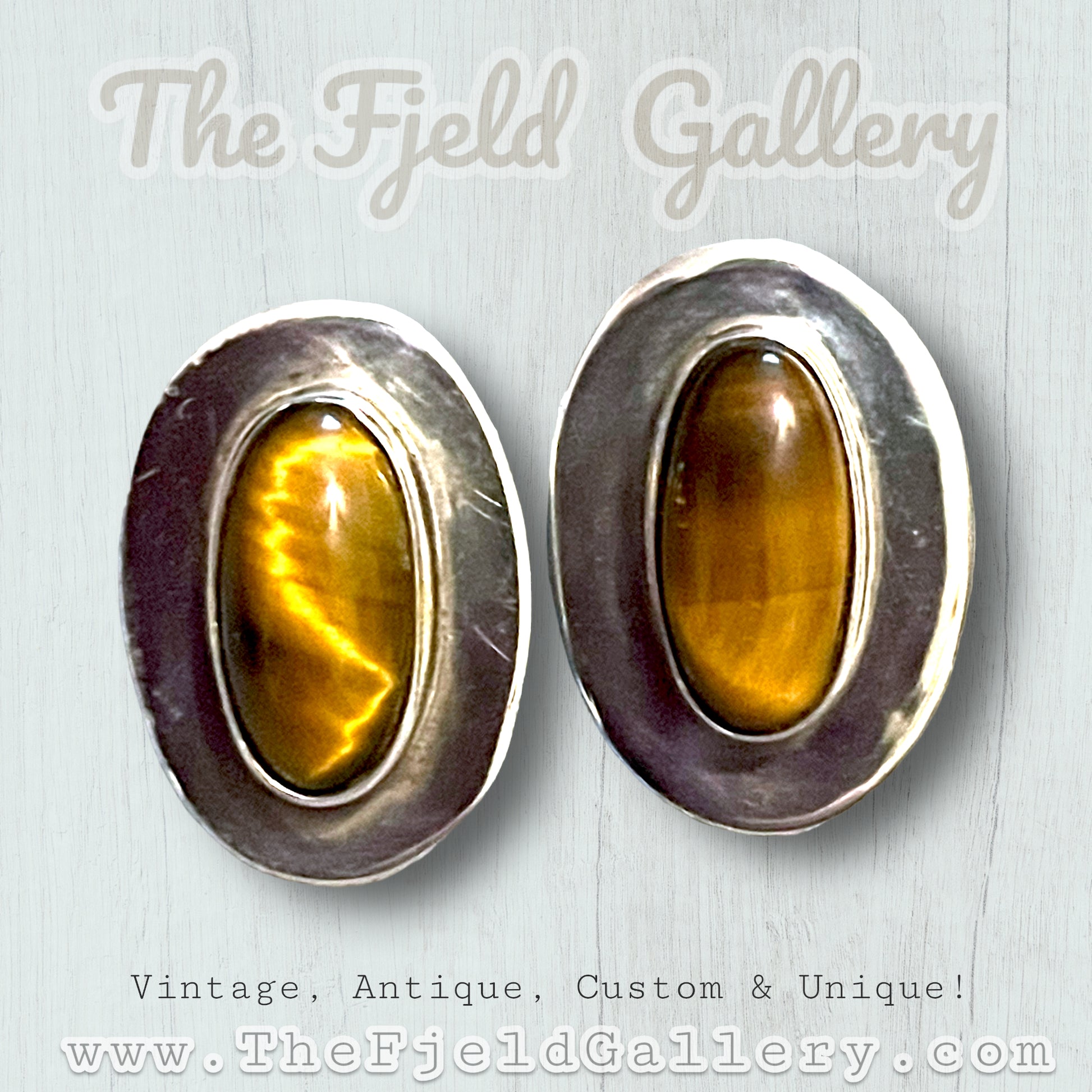 Beautiful bezel set tigers eye gemstone cabochons in sterling silver. Hallmarked on back 925 MEXICO SOMERSET / IONE TISSOT