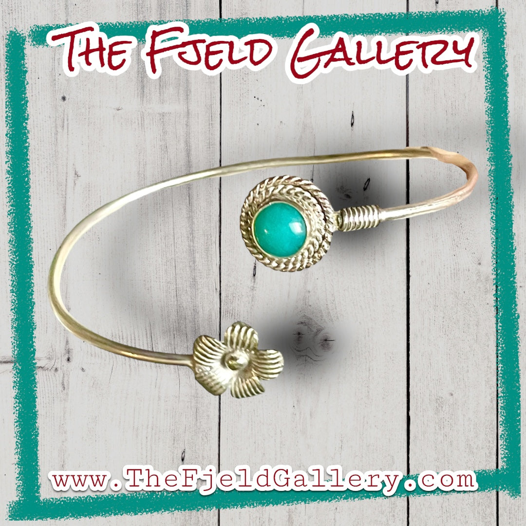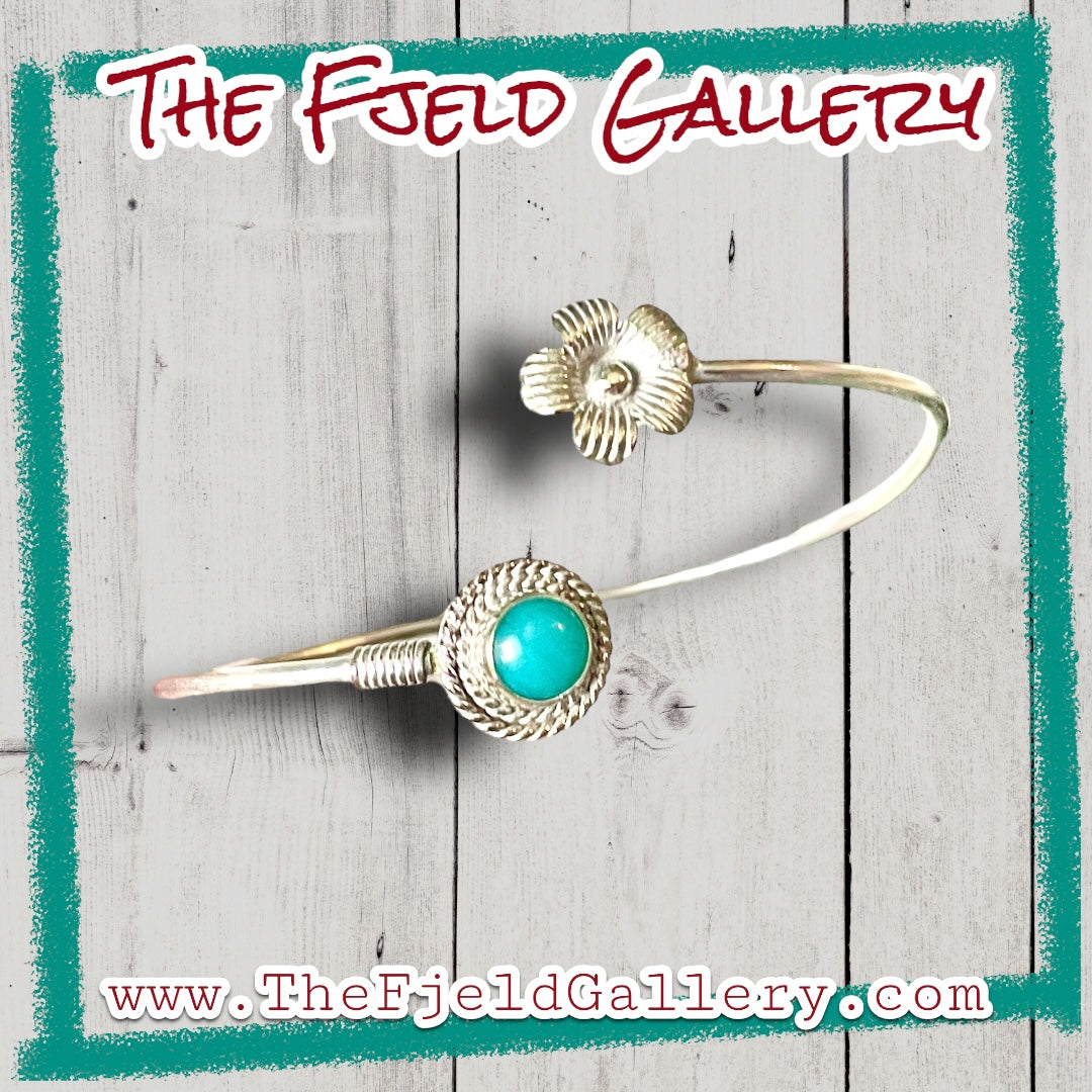 Vintage Sterling Silver & Turquoise Flower Bypass Bracelet