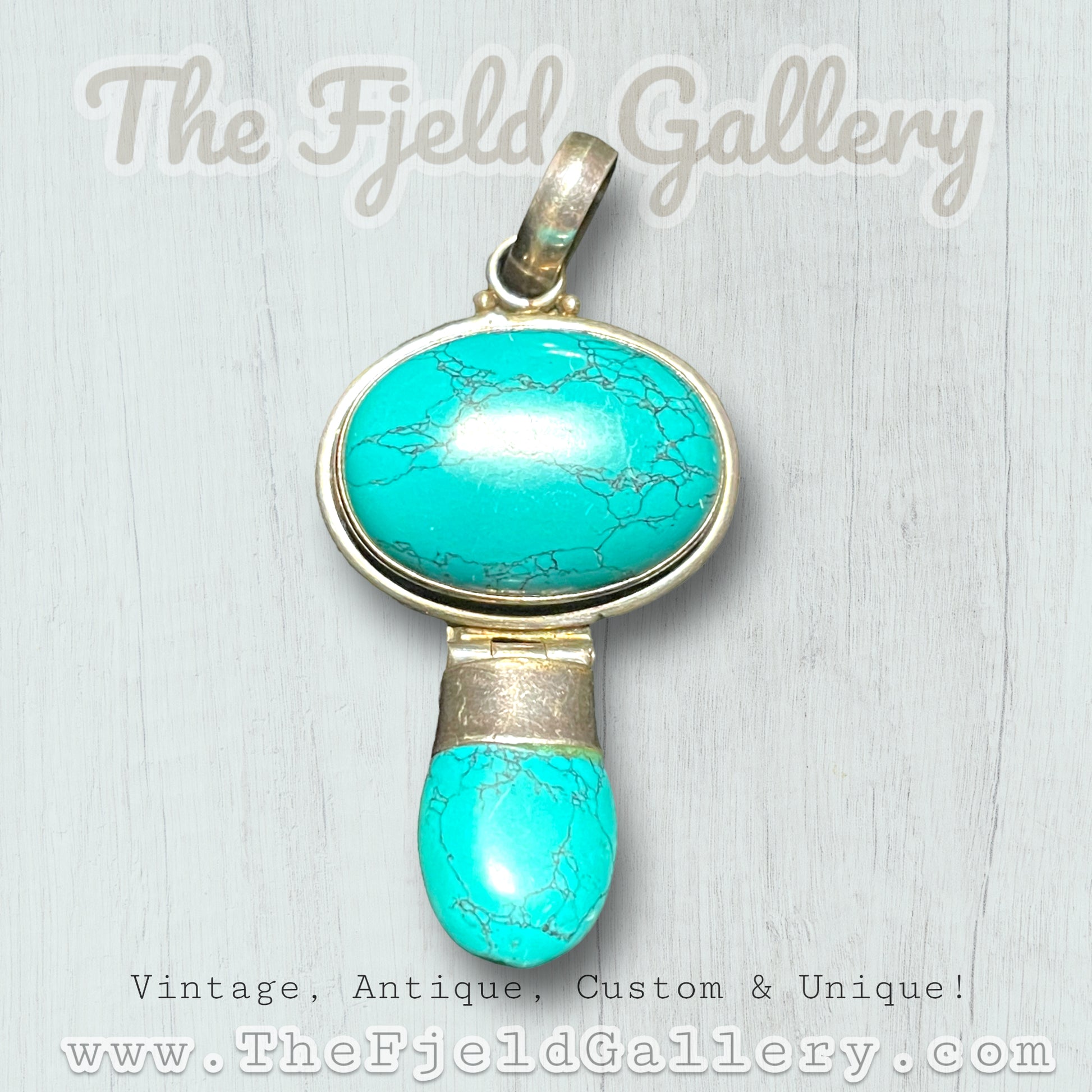 Vintage sterling silver pendant set with turquoise gemstones. Sterling necklace chains available upon request for $25+